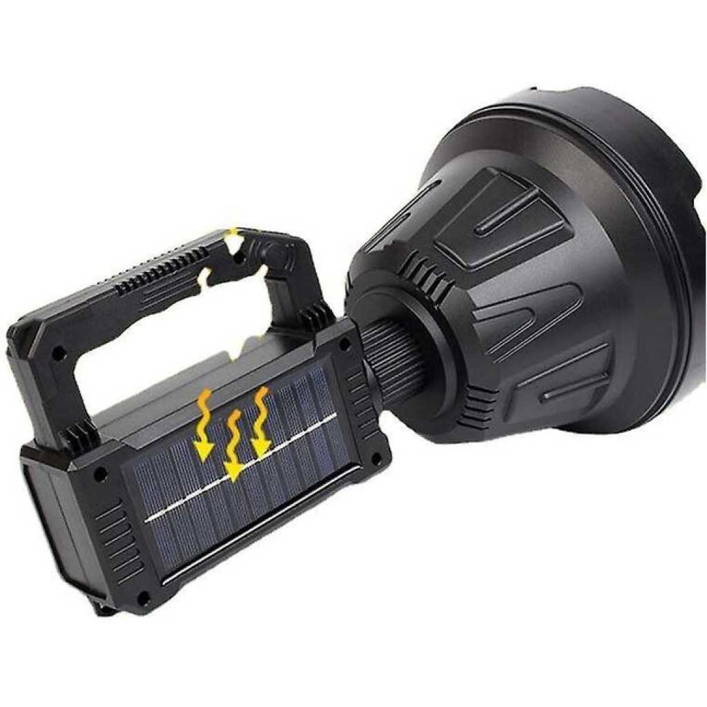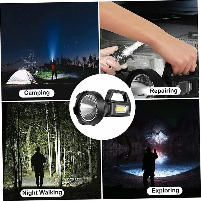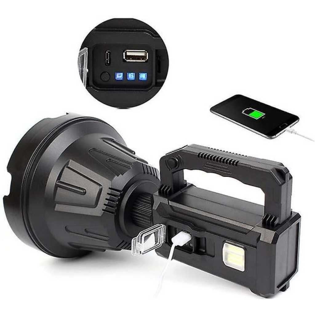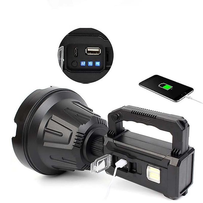 Key Features: Rechargeable Waterproof Waterproof Outdoor searchlight Super Bright Tactical Handheld Spotlight Flashlight Lantern Type LED Flashlight Handheld Lantern- Black Made of ABS material, it is not only sturdy and durable. The P50 super light bulb can illuminate from a long distance, display the battery level, and let you know when charging, which is very comfortable and practical. Using the USB cable and USB interface, you can use the computer to charge the power adapter, and the USB output function can charge mobile devices in an emergency. There are 4 modes to choose from, which can be changed with just a touch. The unique hole design is smart and gorgeous, and it can support tripods (including tripods). Suitable for camping, hiking, outdoor search, etc.