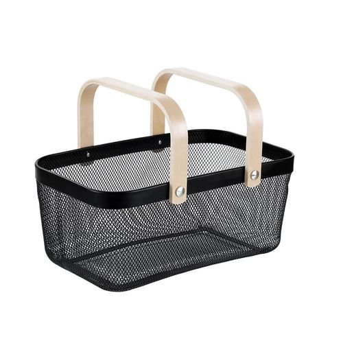 Key Features: Rectangle Metal Mesh Fruit Shopping Wooden Handle Storage Basket- Multi-colour. Small Basket With Handle: These mesh fruit holders for kitchen countertops are a great and decorative way to organize items within your household or produce, bread, vegetables, and snacks Versatile: Use each wire mesh basket for its own use; useful as a way to store fruit, organize shelves, and can even be taken out for a picnic Quality Made: Durable and built to last, each mesh basket is made with metal wire and includes a wooden handle, ensuring your product is safe while it’s stored Dimensions: Each mesh fruit basket is 9.5 x 9.5 x 7 inches, 12 inches with the handle; perfect for holding fruits and other household items Comes With: You will receive 1 black pantry basket, for multiple needs throughout the house