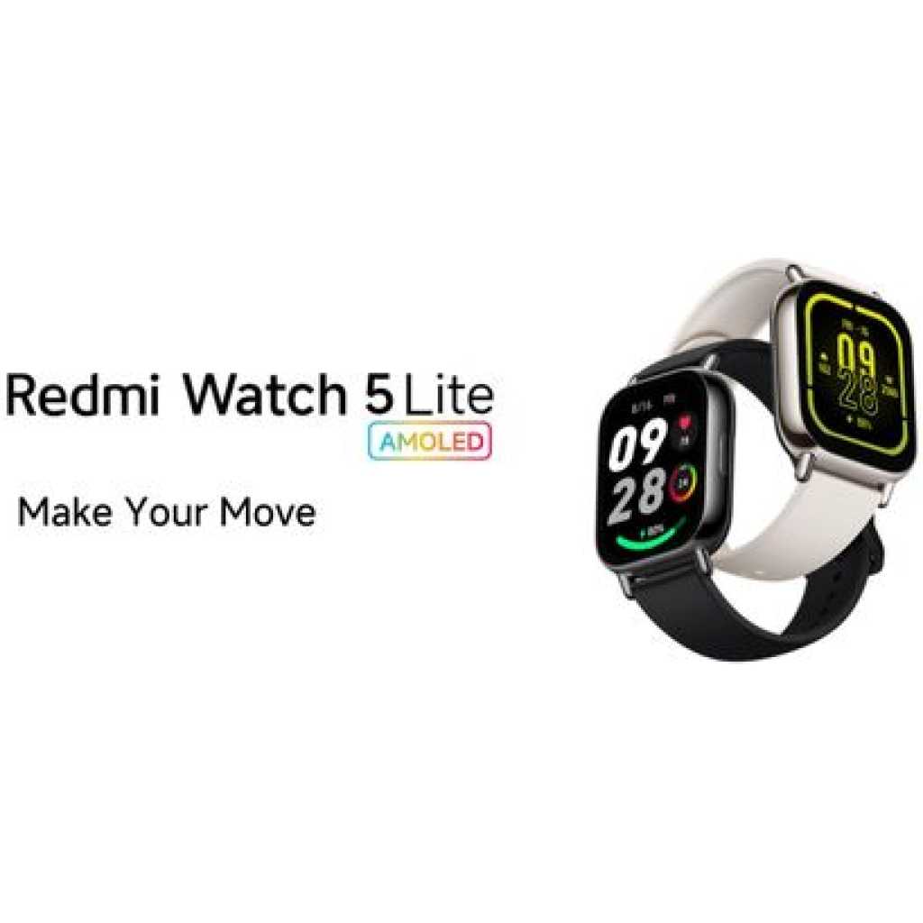 Lightweight and Sleek Design : The Redmi Watch 5 Lite features a simple, lightweight design, making it comfortable to wear all day. It has a rectangular frame and a side button for navigation. 1.83-inch Color Display : The large color display provides clear and easy-to-read notifications and apps like weather, calls, and messages. Long Battery Life : The battery lasts up to 10 days on a full charge, reducing the need for frequent recharging, making it perfect for daily and active use. 5ATM Water Resistance : The watch is water-resistant up to 50 meters, making it suitable for swimming and other water activities. Advanced Health Features : Heart rate monitoring available 24/7. Blood oxygen (SpO2) monitoring , a useful feature for tracking overall health and oxygen levels. Sleep tracking to analyze and improve sleep patterns. Activity tracking : Supports more than 100 sports modes , including walking, running, swimming, and cycling. Smartphone Notifications : Once connected to your phone via Bluetooth, the watch can display notifications for calls, messages, and apps like WhatsApp and Facebook. Music and Camera Control : The watch allows you to control music playback on your phone and even control the phone camera to take photos remotely. Specifications: Display : 1.83-inch TFT color display Resolution : 240 × 280 pixels Battery : Up to 10 days on a single charge Water Resistance : 5ATM (suitable for swimming) Connectivity : Bluetooth 5.3 Sensors : Heart rate monitoring Blood oxygen (SpO2) monitoring Accelerometer Barometer