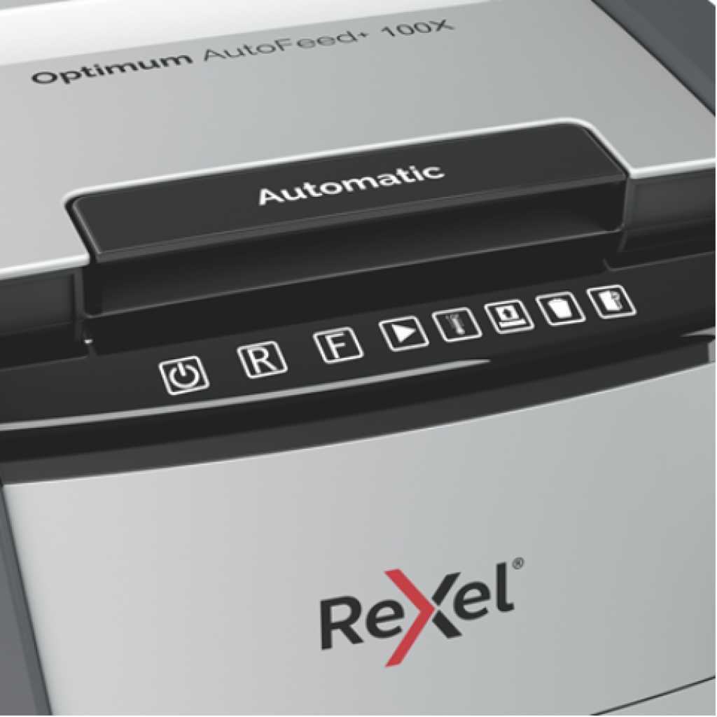 The Rexel Optimum AutoFeed+ 100X Cross-Cut Shredder is designed to simplify your document destruction needs, whether for a small office or home setup. This innovative shredder features advanced auto-feeding technology, allowing you to shred up to 100 sheets of A4 paper (80gsm) at a time without needing to stand by and manually insert each page. This efficiency not only saves time but also increases productivity, especially in busy office environments. Security and Performance: Security is paramount with the Optimum AutoFeed+ 100X, providing a P-4 security level, which ensures that your sensitive documents are shredded into 4x28mm cross-cut pieces. This size is ideal for most business and personal documents, meeting GDPR compliance standards. The machine is also capable of shredding staples, paper clips, and even credit cards, making it a versatile addition to any workspace. Ease of Use: The shredder is designed with user convenience in mind. Its 34-liter pull-out bin is large enough to hold a significant amount of shredded material, reducing the frequency of emptying. The anti-jam technology ensures smooth operation, preventing frustrating paper jams that can slow down your work. Additionally, the shredder includes a manual slot for up to 8 sheets, providing flexibility for smaller shredding tasks. Quiet and Efficient: One of the standout features of the Rexel Optimum AutoFeed+ 100X is its ultra-quiet operation, running at just 55dBA. This makes it ideal for environments where noise levels need to be kept to a minimum. The shredder also offers a continuous run time of 20 minutes, with a cooling fan to prevent overheating and an automatic sleep mode that activates after 3 minutes of non-use, conserving energy and extending the machine’s lifespan. Build and Design: A sleek, modern design in silver, the Rexel Optimum AutoFeed+ 100X will fit seamlessly into any office or home setting. The touch control panel makes it easy to operate, and the infra-red bin full sensor ensures that you are alerted when the bin needs to be emptied, preventing overflow and potential mess. Ideal for Professionals: Whether you need a reliable shredder for personal use or a small team, the Optimum AutoFeed+ 100X offers the perfect balance of security, efficiency, and ease of use. Its robust build and thoughtful features make it an investment in both your time and the security of your sensitive documents. Technical Specifications: Shredder Type: Cross-Cut Shredder Security Level (DIN): P-4 Cut Size: 4x28mm Sheet Capacity (Auto Feed): 100 sheets Sheet Capacity (Manual Slot): 8 sheets Bin Capacity: 34 liters Noise Level: 55dBA Continuous Run Time: 20 minutes Cooling System: Fan cooling with sleep mode Additional Features: Anti-jam technology, Infra-red bin full sensor, Shreds staples, paper clips, and credit cards Throat Width: 220mm Plug Type: UK