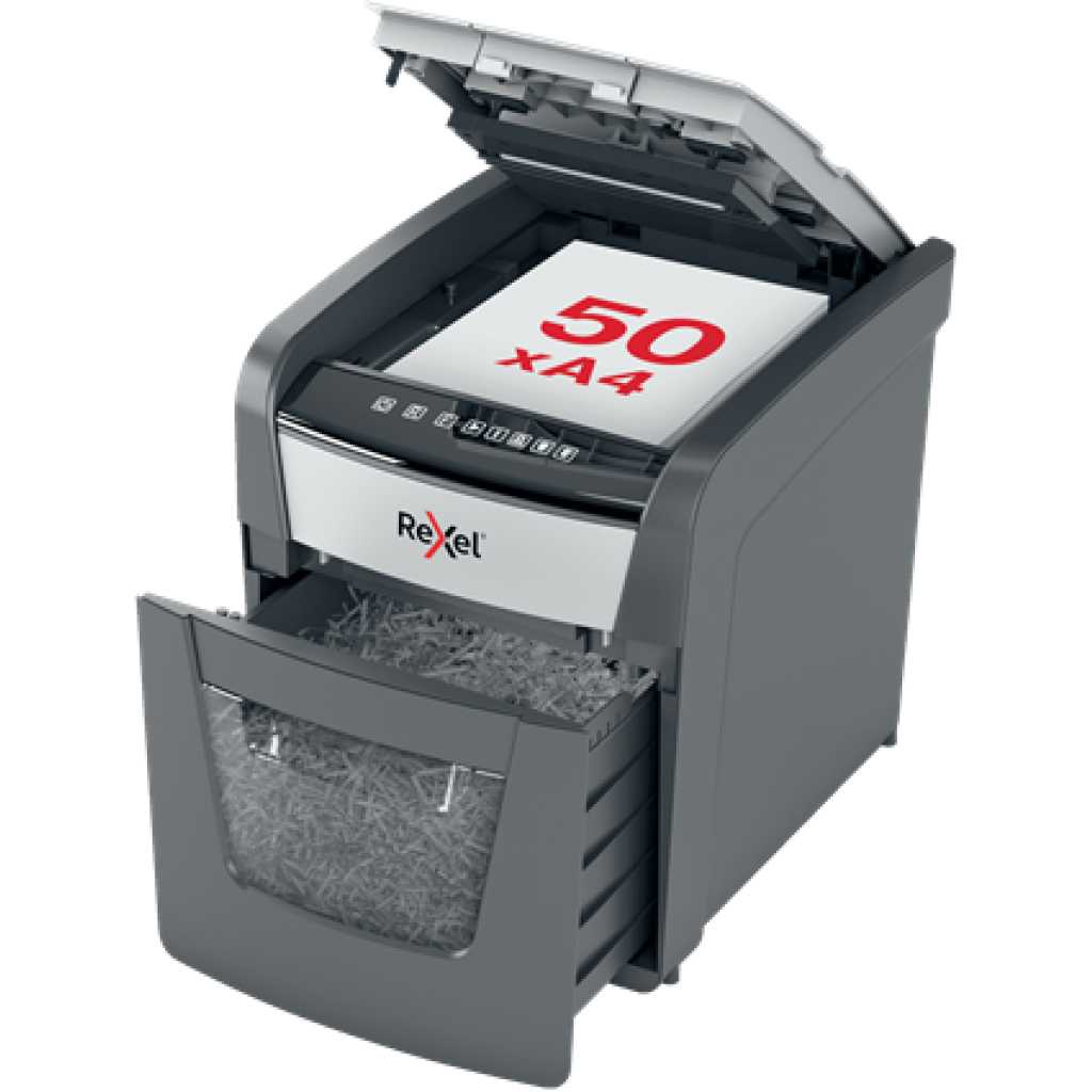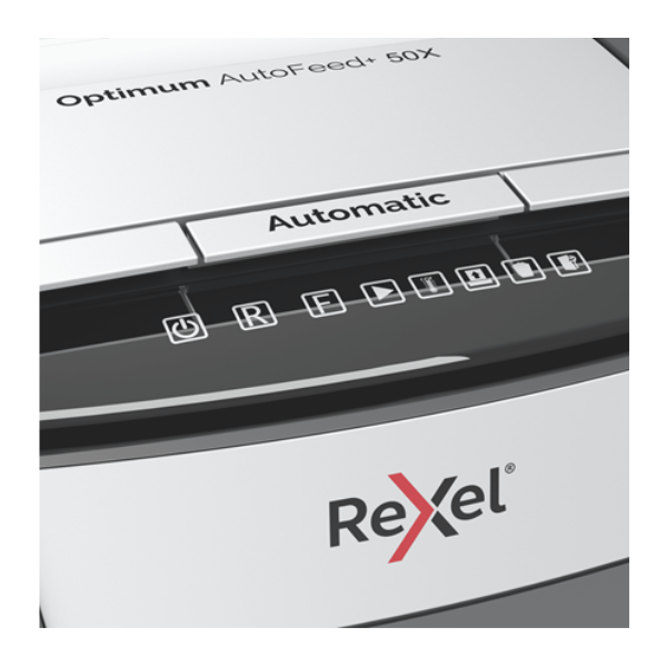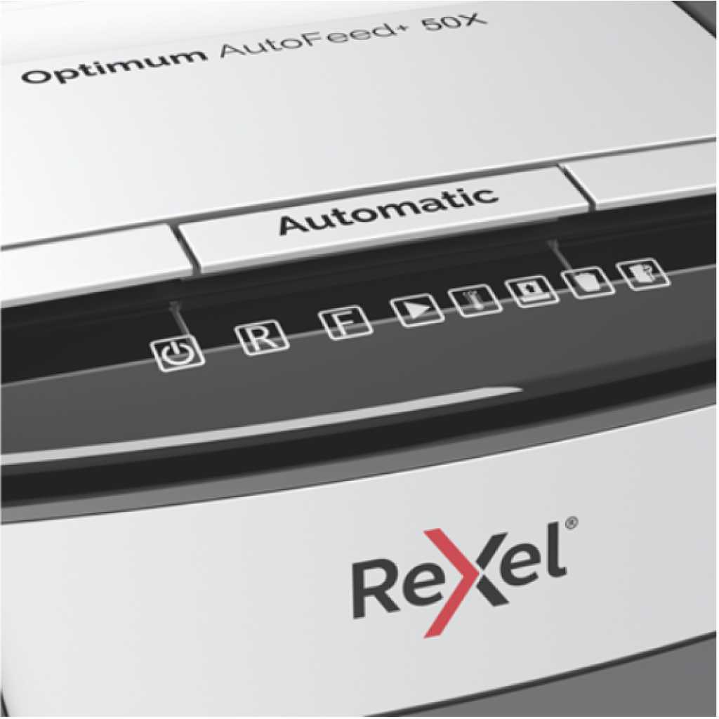 The Rexel Optimum AutoFeed+ 50X Cross-Cut Shredder is a compact yet powerful shredding solution ideal for both home and small office use. Designed to simplify document disposal, this shredder can automatically handle up to 50 sheets of A4 paper at once, reducing the time and effort needed to secure your confidential information. The P-4 security level ensures that your documents are shredded into 4x28mm pieces, offering a high level of protection against data theft. One of the standout features of the Optimum AutoFeed+ 50X is its ability to shred not just paper, but also staples, paper clips, and even credit cards. This makes it a versatile tool for managing a variety of office waste without the hassle of manually removing these items beforehand. The 20L pull-out bin provides ample capacity for shredded materials, and the infrared sensor ensures you are notified when the bin is full, preventing overflow and maintaining a tidy workspace. The shredder operates with a continuous run time of 10 minutes, backed by fan cooling technology to prevent overheating. Despite its robust capabilities, it remains ultra-quiet, operating at just 55 dBA, making it suitable for any work environment without causing disruption. The intuitive touch control panel offers ease of use, while the anti-jam technology ensures a smooth shredding experience, minimizing interruptions. For added convenience, the shredder includes a manual feed slot for up to 6 sheets, perfect for quickly disposing of smaller batches. With its sleek design and efficient functionality, the Rexel Optimum AutoFeed+ 50X is a reliable choice for anyone needing to manage sensitive documents securely. Whether you’re dealing with personal information or proprietary business data, this shredder offers the security, efficiency, and ease of use that modern offices demand. Technical Specifications: Sheet Capacity: Auto-feed up to 50 sheets, manual feed up to 6 sheets Cut Type: P-4 cross-cut (4x28mm) Bin Capacity: 20L pull-out bin Run Time: 10 minutes continuous, with fan cooling Noise Level: 55 dBA ultra-quiet operation Shreds: Paper, staples, paper clips, credit cards Anti-Jam Technology: Yes Bin Full Sensor: Infrared sensor Control Panel: Touch control interface Dimensions: W363 x D430 x H405mm Weight: Approximately 7.8 kg