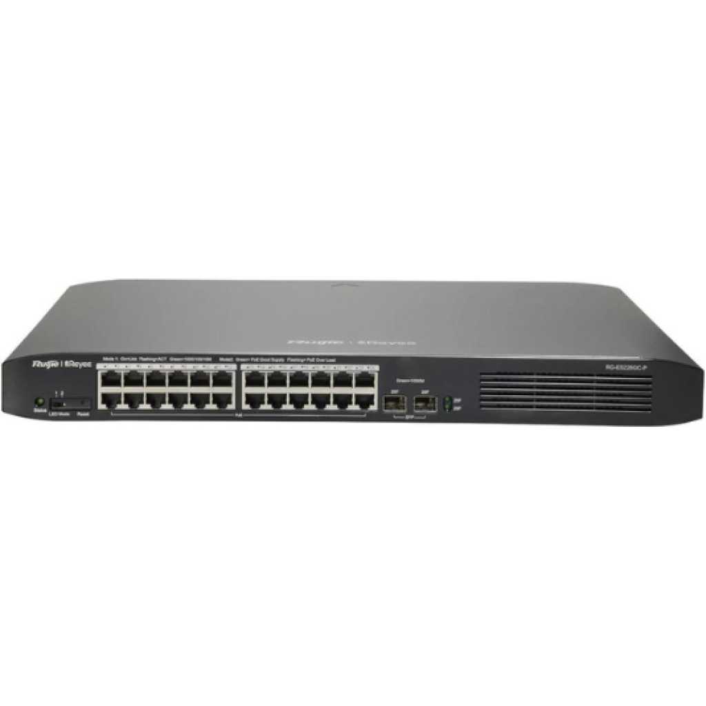 The Ruijie RG-ES226GC-P is an advanced 26-port Gigabit Smart Cloud Managed PoE Switch, specifically engineered to meet the demanding needs of modern businesses. Whether you are operating a small to medium-sized enterprise, managing a large office building, or setting up a robust surveillance network, this switch provides the performance, reliability, and scalability required for a seamless network experience. Comprehensive Port Configuration and High PoE Budget This switch comes with 24 Gigabit PoE+ ports and 2 additional SFP uplink slots, allowing for efficient data transmission and flexible connectivity options. The 24 PoE+ ports support both data and power transmission, with each port delivering up to 30W of power, making it ideal for connecting high-consumption devices such as IP cameras, wireless access points, and VoIP phones. The total PoE power budget of 370W ensures that all your devices are adequately powered, even in large deployments. Cloud-Managed for Remote Monitoring and Configuration One of the standout features of the RG-ES226GC-P is its cloud management capability. Through Ruijie’s cloud platform, network administrators can remotely monitor, configure, and troubleshoot the switch from anywhere with an internet connection. This reduces the need for on-site IT support, saves time, and minimizes downtime, making it an invaluable asset for businesses with multiple locations or limited IT resources. Designed for Enhanced Network Security Security is paramount in any network, and the RG-ES226GC-P is designed with several features to ensure the safety of your data. The switch supports advanced security protocols, including 802.1x port-based authentication, DHCP snooping, and IP-MAC-Port binding, which help protect the network from unauthorized access and potential threats. Automatic Loop Prevention and Stable Operation Network loops can cause severe issues, leading to downtime and disruptions. The RG-ES226GC-P includes an automatic loop prevention feature, which actively detects and mitigates any loops in the network. This ensures continuous operation and minimizes the risk of network failures. Scalability and Future-Proofing As businesses grow, so do their networking needs. The RG-ES226GC-P is designed with scalability in mind, allowing you to expand your network effortlessly. The switch supports VLANs, enabling you to segment your network for better security and performance. Additionally, with a 52 Gbps switching capacity, the switch can handle high volumes of traffic, ensuring smooth data flow across all connected devices. Durable and Reliable Build Constructed with a sturdy 19-inch rack-mountable steel case, the RG-ES226GC-P is built to last. Its robust design ensures that it can withstand the rigors of continuous operation in demanding environments. Furthermore, the switch is equipped with built-in fans for efficient cooling, which helps maintain optimal performance and prolongs the lifespan of the device. Ease of Deployment The RG-ES226GC-P is designed for easy deployment. Its plug-and-play nature means that it requires minimal configuration, making it suitable for businesses that need a quick and reliable networking solution without the complexity. Whether you’re setting up a new network or upgrading an existing one, this switch offers a hassle-free experience. Ideal for Surveillance and CCTV Networks This switch is particularly well-suited for surveillance networks, thanks to its IP camera recognition feature. It automatically detects and optimizes settings for connected IP cameras, ensuring smooth and reliable video transmission. This makes it an excellent choice for businesses looking to enhance their security systems with high-definition CCTV cameras. Technical Specifications Ports : 24 x 10/100/1000Base-T PoE+ RJ45 ports, 2 SFP uplink slots PoE Budget : 370W total, up to 30W per port Switching Capacity : 52 Gbps Forwarding Rate : 38.69 Mpps MAC Address Table : 8,000 entries VLANs Supported : Up to 16 VLANs Surge Protection : 4kV protection on PoE ports Dimensions : 440 mm x 289 mm x 43.6 mm Weight : 4.2 kg (with packaging) Cooling : Built-in fans for efficient heat dissipation Mounting : 19-inch rack-mountable steel case MTBF (Mean Time Between Failures) : Over 200,000 hours Warranty : 1 year. The Ruijie RG-ES226GC-P is a versatile, high-performance switch that combines robust features with ease of management. It’s a perfect fit for businesses looking to establish a reliable and secure network infrastructure, capable of supporting a wide range of devices with minimal maintenance and downtime.