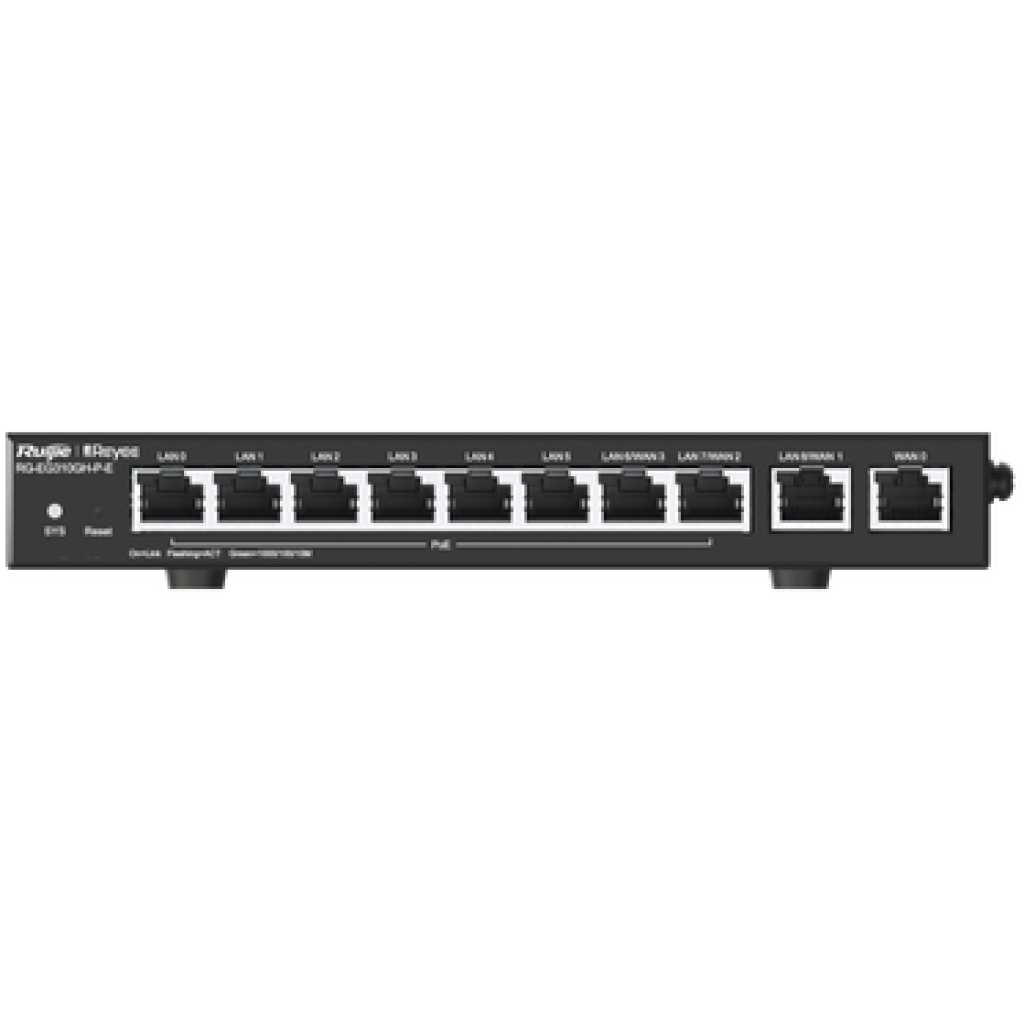RG-EG310GH-P-E Desktop 10-port Full Gigabit Router,1.5 Gbps Throughput, High-Performance VPN Router, Powerful VPN For Branches And Remote Employees, Traffic Visualization And Monitoring, Efficient Bandwidth Management, Multi-WAN, Intelligent Load Balancing The RG-EG310GH-P-E is a high-performance, cloud-managed, 10-port Gigabit PoE router from Reyee, according to Reyee’s website. It’s designed for small to medium-sized businesses and high-demand networking environments, offering features like advanced security, multi-Gigabit connectivity, and Power over Ethernet (PoE) support . High-Performance Connectivity: Stay connected with Reyee Routers, a selection of high-performance and reliable routers designed for home and business. The RG-EG310GH-P-E model provides an array of features to meet any need. Offering robust connectivity, the router features intelligent load balancing, link redundancy between multiple WAN ports and advanced security protocols. Advanced Features for Maximum Performance: Reyee Routers are used to ensure reliable, safe and high-performance networks. The RG-EG310GH-P-E model features powerful dual-core processor, that eliminates lags and provides a smoother experience, delivering maximum performance and reliability. Network Application: Allows device remote monitoring and maintenance from an intuitive interface. Multi-WAN, Intelligent Load Balancing. Easy Setup and Reliability: Installing and using Reyee Routers is a breeze. With the help of intuitive mobile apps and browser-based management, setup is quick and easy. You can customize the portal page, block unwanted applications and securely access your internal device anytime from anywhere. Cloud Management: The RG-EG310GH-P-E is managed through a cloud platform, allowing for centralized control and configuration of multiple devices. PoE Support: It has eight PoE/PoE+ ports, allowing you to power and connect devices like access points, IP cameras, and VoIP phones. Multi-WAN and Load Balancing: It supports multiple WAN connections and intelligent load balancing for increased reliability and performance.