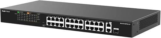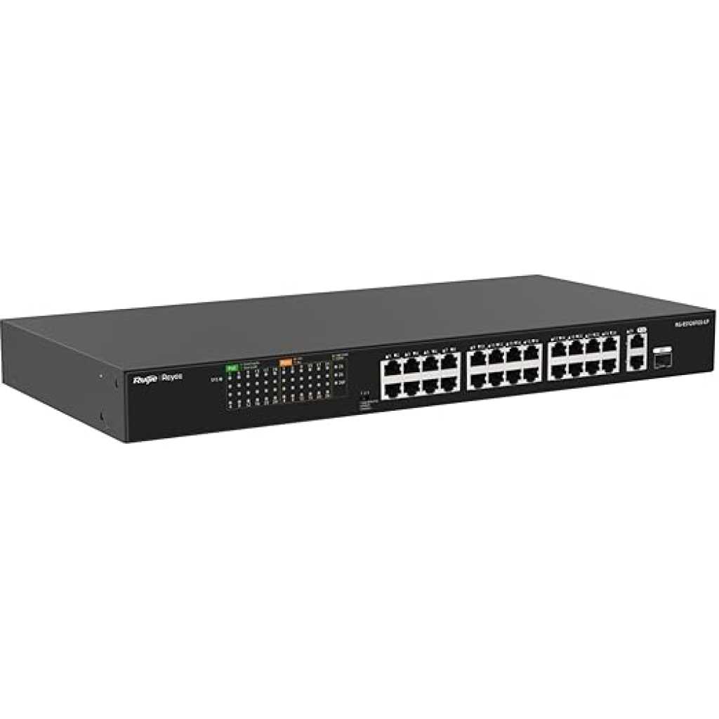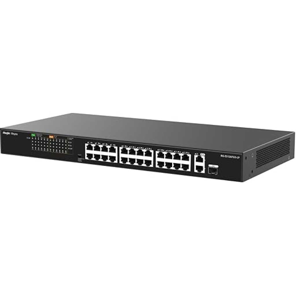 Key Features: Ruijie RG-ES126FGS-P, 24-Port 10/100 Mbps with 2-Port Gigabit Unmanaged PoE Switch 24-port 10/100 Mbps with 2-port Gigabit unmanaged PoE switch Unmanaged switch, which is visible on Ruijie Cloud Intelligent and secure CCTV network Intelligent PoE Management High-quality design Applicable to various scenarios