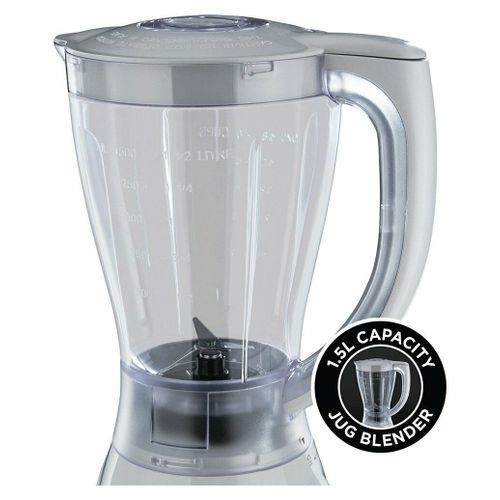 Key Features: 2 speeds + pulse 1.5 litre capacity clear plastic jug Handy removable filling cup in lid Safety interlock will not operate unless jar is correctly fitted Stainless steel blade