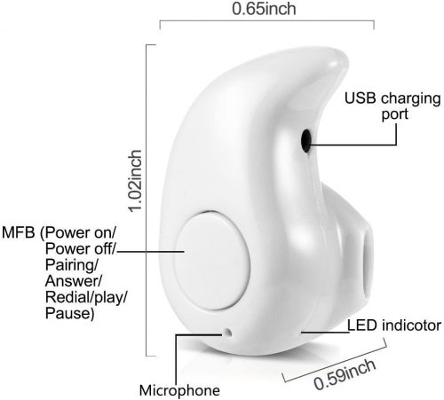 Longest Battery life in Similar Bluetooth Earphone Up to 2 hours of continuous talk time, 3 hours of music time, The longest battery life in Similar Mini Bluetooth earbuds , enough time for you to enjoy music and hook on your phone Connect to Two Devices at the Same Time Pair it with two Bluetooth Enabled devices at the same time and don’t miss your calls when you have two cell phones Minimal appearance Designed with mini portable appearance; Elegant appearance, small, lightweight and stylish, wearing comfort Compatible with Most Bluetooth Enable Device This Earphone is Bluetooth V4.0+EDR, fully backward compatible with Most Bluetooth Version Device (V4.0,V3.0+EDR,V2.1+EDR,V2.0+EDR,V1.2,V1.0 etc.). Just make sure your phone (or other Device) Supports Bluetooth. Specifications: Chipset: CSR chipset Bluetooth Version: V4.0 + EDR Bluetooth Profile: A2DP, AVRCP, HSP, HFP Stream multimedia: Music, Audio, Video, Podcasts, GPS Usage time: 2 to 3 hours (Base on the volume level) Standby time: up to 80 hours Charger time: 2 hours Working Distance Range: 33ft Frequency Range: 2.4GHz to 2.480GHz Battery: Li-on battery IOS Battery Displays: Yes Siri: Yes How to Use Step 1:Pairing, press the power button of the speaker you will see the blue-red light blinking alternately. Step 2:Open the bluetooth of your phone or other bluetooth-enabled devices and search the bluetooth speaker devices. Step 3:Select the Bluetooth model and click connect. What’s included: 1x AIYIBEN Mini Bluetooth Earphone 1x USB Charging Cable 1x User manual Key Features: NEW GENERATION:Bluetooth V4.1 and 4.0 smart chip, efficient and stable data transmission ,Compact and ultra Light Design Stereo Bluetooth Single Earpiece.Hands free for you to do everything with the earpiece. LONG-LASTING:50 MAh rechargeable polymer battery provide up to 2 hours talking time(music time:2 hours;standby time:120 hours). AWESOME COMPATIBILITY:Compatible with Any Bluetooth-Enabled Devices. BUILT-IN MICROPHONE: Invisible, smallest and one-button design.Digital noise-cancelling provides high quality clear and natural voice.You DO NOT even feel its existence ,but it does. COMPATIBILITY – Can be used with all Bluetooth enabled mobile phones