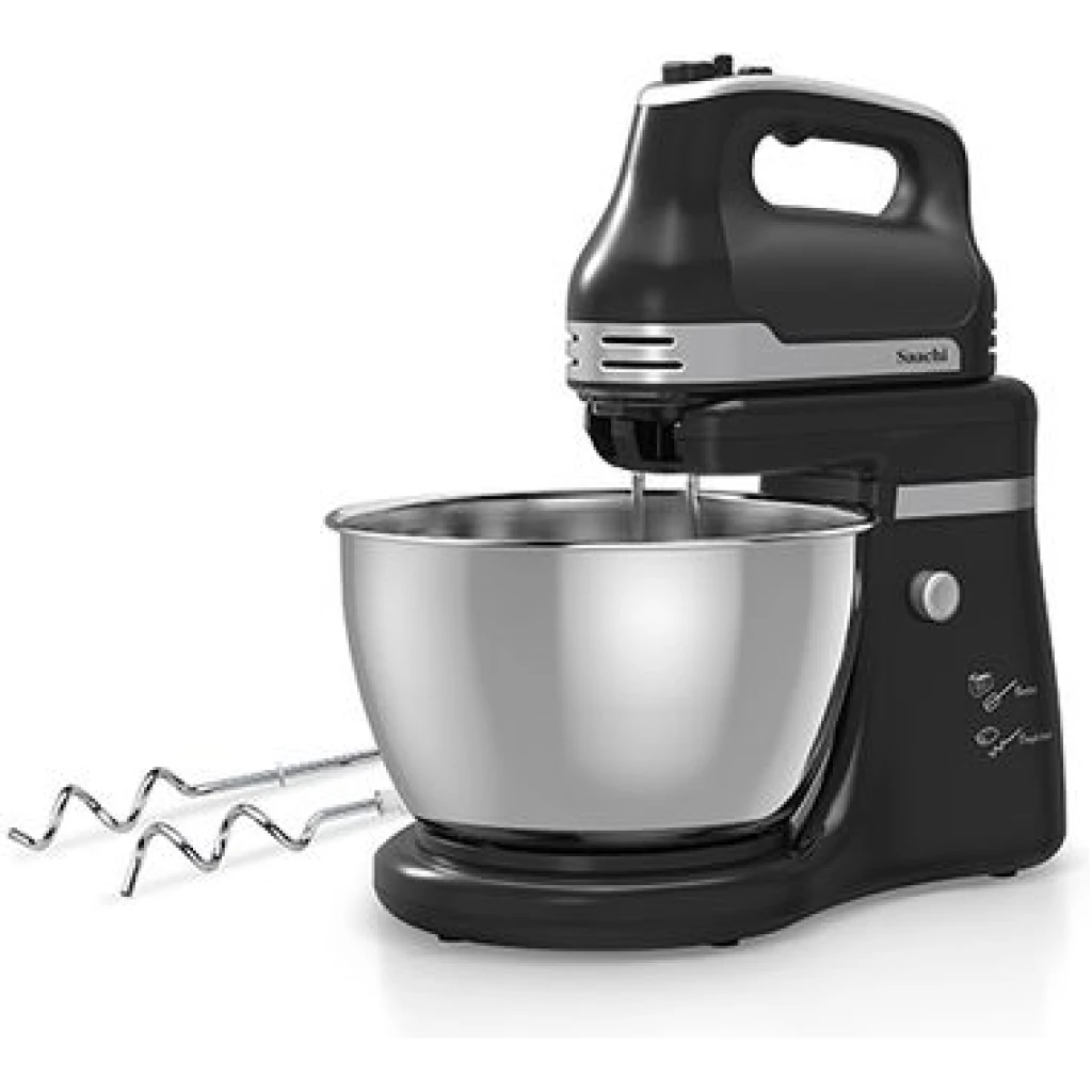 NL-HM-4173 NL-HM-4168 NL-CH-4256 Hand Mixer The Saachi 3-Speed Hand Mixer, NL-HM-4173, is a great addition to your kitchen to simplify your everyday tasks. The flat beaters are designed for general mixing purposes such as whipping and blending. The Rotating Bowl can carry out the mixing automatically, freeing you up to undertake other activities around the kitchen. The Turbo functions allow instant high speed mixing. When you whip up that perfect dough for a soft and delicious cake, it will be prepared with extreme consistency.