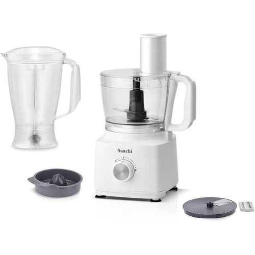 Key Features: Saachi Food Processor Blender- White 1.5L high-capacity blender jar 1.2L chopper jar 2-speed operation with pulse Attachments – Citrus juicer, slicer and shredder 3 attachments? citrus juicer, slicer, and shredder