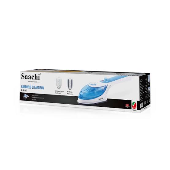The Saachi Handheld Steam Iron NL-IR-387C is a compact and easy to use appliance. It has a temperature control dial and a powerful burst function to give you complete control over the intensity of the steam. It comes with 2 brush attachments including a flat brush for regular clothing and a upholstery brush for thicker surfaces such as curtains or even couches. The base stand that comes with the iron can be used to rest the iron without having the Teflon soleplate touching and damaging your table. Features Teflon soleplate Temperature control knob Base stand Water tank 2 Additional brushes Upholstery brush attachment Flat brush attachment Powerful burst function Accessories: Plastic measuring cup