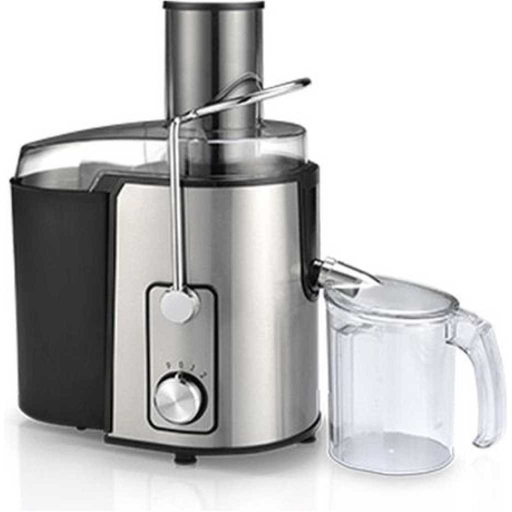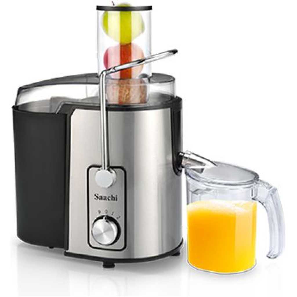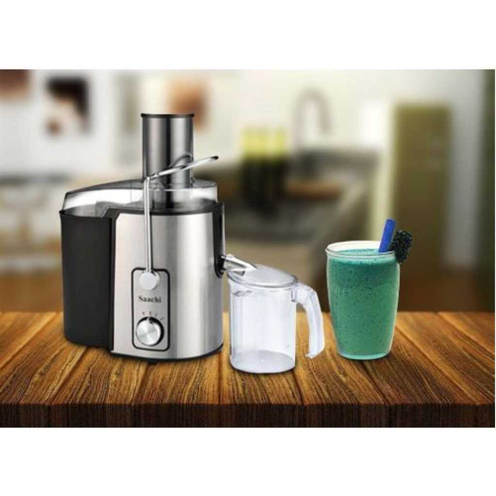 Saachi Stainless Steel 800W Blender Juicer Extractor- Silver Juice Extractor, Citrus Juicer Centrifugal Juicer Electric Juicer Machine. 850 Watt High Power Fruit and Vegetable Juicers for Apples, Lemon, Oranges, Carrots, and Tomatoes. Why Choose Our Juice Extractors? Get Fresh Fruits and Vegetables Juice Every Day! This High Power Juice Fruit & Vegetable Extractor provides a simple way to get the nutrients you need every day. The fast, powerful blade system extracts fresh, healthy juice, and varieties of recipes included in the instruction manual to help you get started. Powerful 800-Watt and Two-Speed Motor. You can choose from two motor speeds for fast and easy juicing by pressing the Speed Buttons on the front of the juicer. Choose the high speed when juicing hard fruits/vegetables such as carrots, pineapples, and beets with the rind. The low speed works with softer or riper fruits/vegetables like citruses, oranges, peaches, grapes, melons, apples, and tomatoes. By choosing the right setting, you’ll enjoy better, maximized juice extraction. Wide Feed Tube for Whole Juicing The wide feed tube fits many fruits with minimal chopping or slicing, which means you can have fresh, healthy juice with less prep time and you can get the nutritional benefits of the whole fruit or vegetable as well. The metal mesh filter spins out the pulp, so you can enjoy juice with the nutrients you want. Easy-to-use and Easy-to-clean The High Power Juicer has stainless steel housing for extended durability and easy care. Rubber feet prevent the juicer from slipping on your countertop.