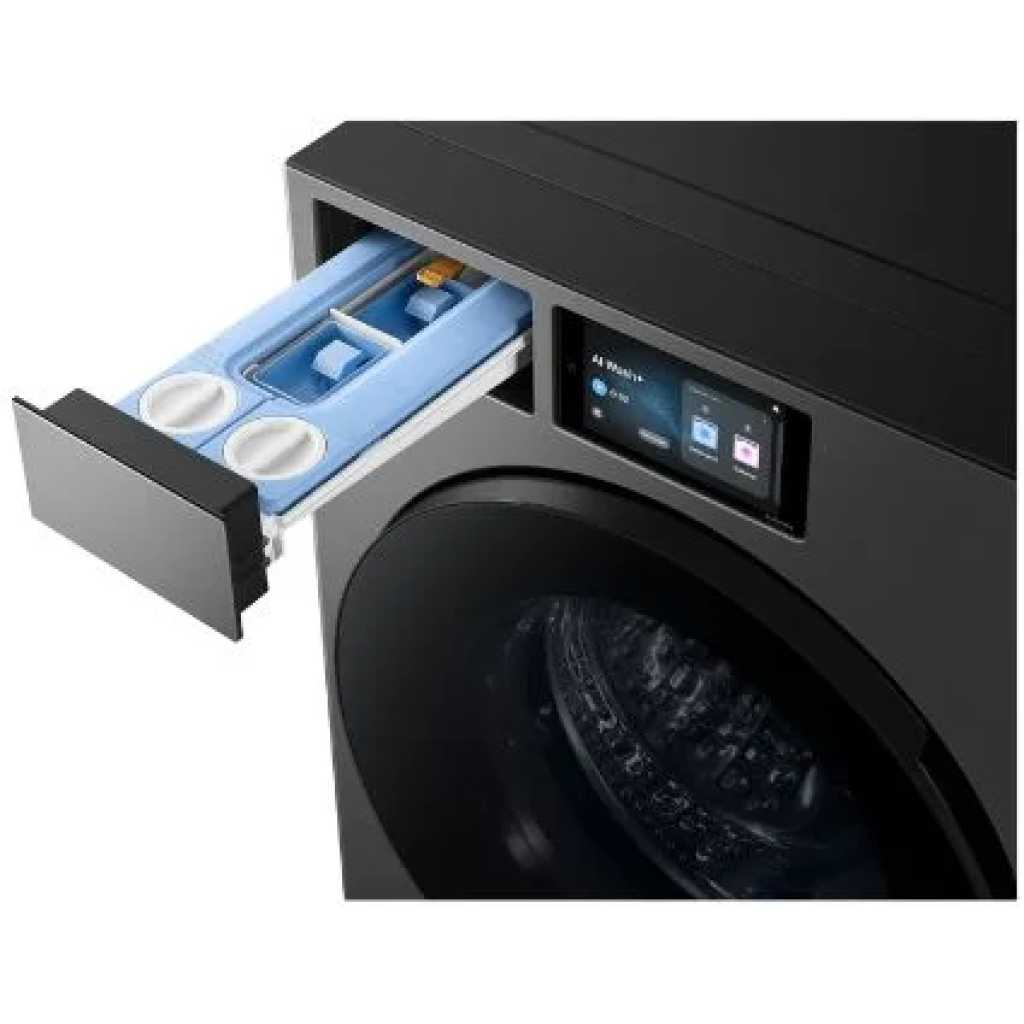 Samsung 22kg/11kg Front Load Washer Dryer, Bespoke AI Wash, AI Ecobubble, WD90F22BCSNQ Air Wash A cycle that deodorizes and sanitizes clothes without using water by using heated air to remove unpleasant odors and kill bacteria. Digital Inverter Motor This motor offers energy efficiency, quieter operation, and a longer lifespan compared to a conventional motor. It often comes with a multi-year warranty. Diamond Drum The drum’s diamond-shaped indentations are designed to be gentle on clothes while moving them effectively. This minimizes snagging and keeps your laundry in good condition. Ceramic Heater The heating element in the machine is coated with ceramic, which helps prevent calcium buildup (limescale) from hard water. This increases its durability and heating efficiency. Intensive Stain Removal A special pre-wash setting that helps remove a variety of stubborn stains with the touch of a button. Other features LED Display: A clear, user-friendly display shows program progress, settings, and remaining time. Quick Wash: A shorter cycle for small, lightly soiled loads. Delay End: A function that lets you set a program to finish at a later time. Child Lock: A safety feature that prevents children from accidentally changing the cycle.