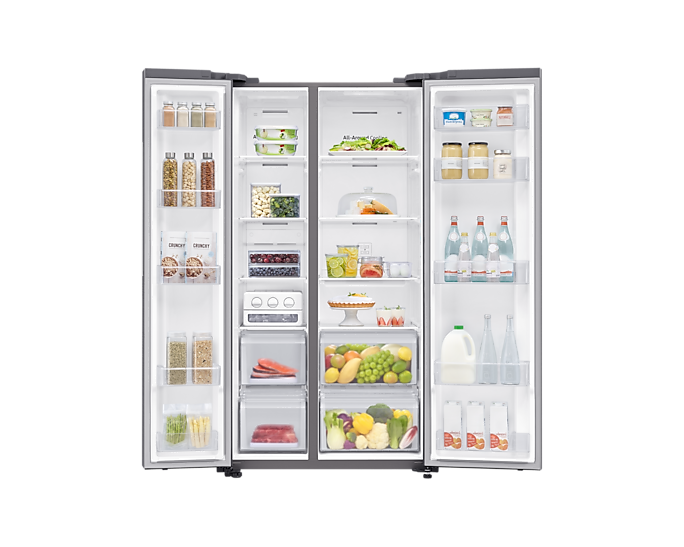 Key Features: Samsung 370-liter Refrigerator with Dispenser RB37N4160B1 – Double Door Fridge, Bottom Mount Freezer, Frost Free Gross capacity: 370 litres Net Capacity: 290 litres Frost-free Digital inverter compressor Interior LED lighting in fridge compartment Separate freezer temperature control Power cool function Deodorizing filter Tempered glass shelves LED lighting