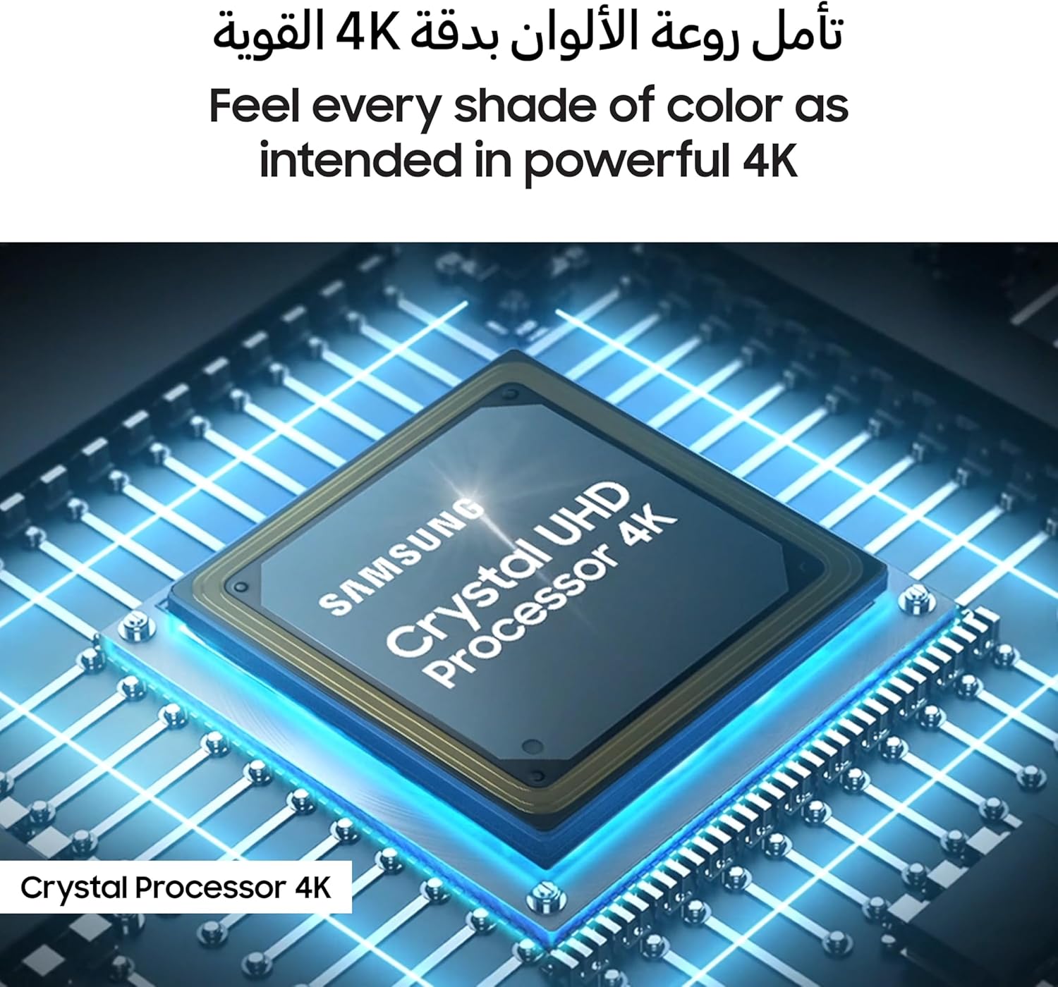 Key Features: CRYSTAL PROCESSOR 4K: Feel every shade of color as intended in powerful 4K. See every shade of color in all its original glory with our advanced processor. Plus, powerful 4K upscaling ensures you get up to a 4K resolution for the content you love. METALSTREAM DESIGN: An elegant metal design that upgrades your space. Inspired by aircraft design, this TV features a luxurious metal body. A single sheet of metal is used to create the slim bezel, enabling a truly immersive experience. SAMSUNG KNOX SECURITY: Your privacy is secure on Samsung TVs. Sensitive data like passwords are protected, connected IoT devices are monitored and malicious apps and sites are automatically blocked. Plus, Samsung’s security team helps keep your TV safe with constant updates. 4K UPSCALING: Watch your favorite content in 4K. Our powerful 4K upscaling technology ensures you get up to 4K resolution for the content you love. ENDLESS FREE CONTENT: Access free channels, including Samsung TV Plus premium channels. Enjoy news, sports, movies, entertainment, music, kids’ shows and more. With new content continuously added, there’s always more to explore.
