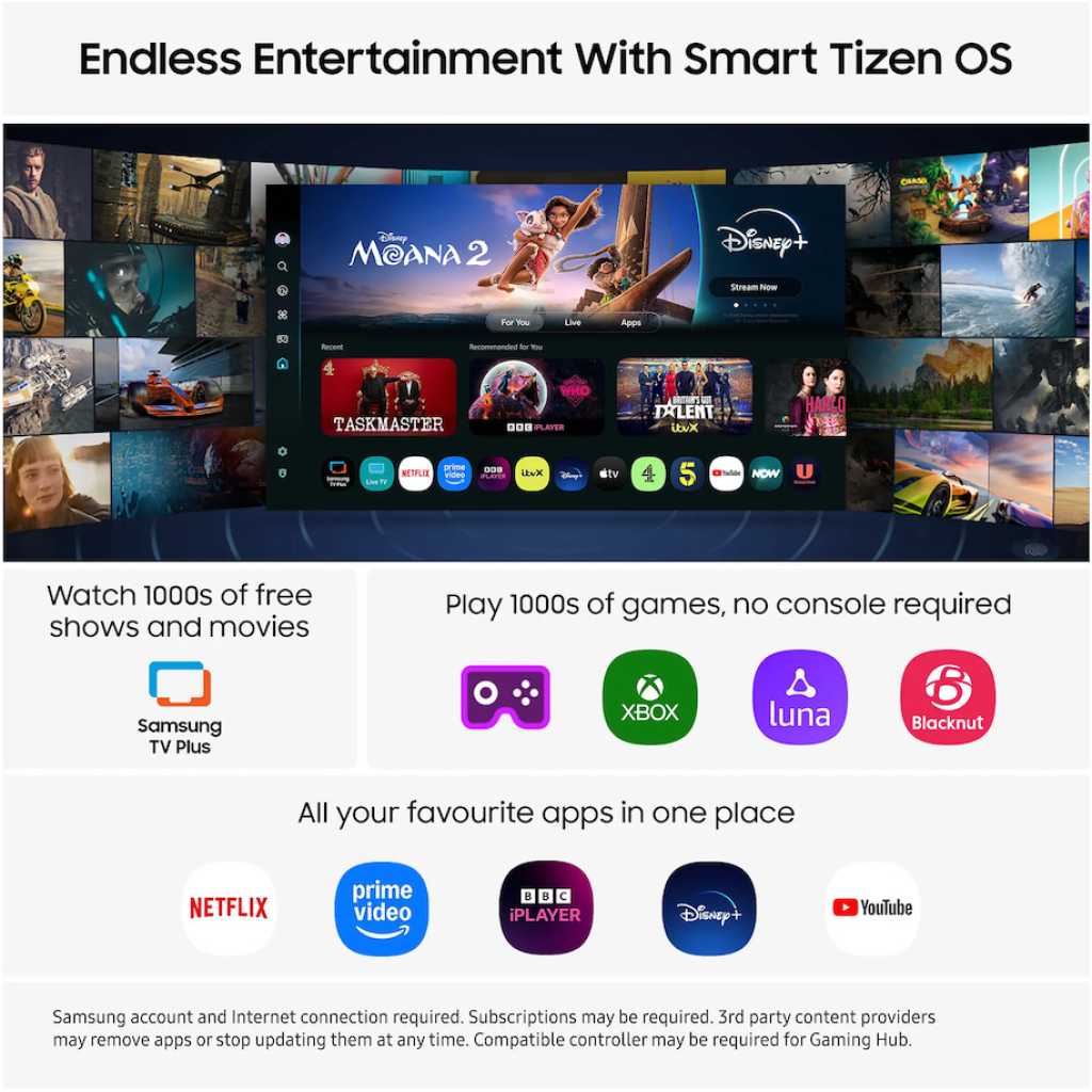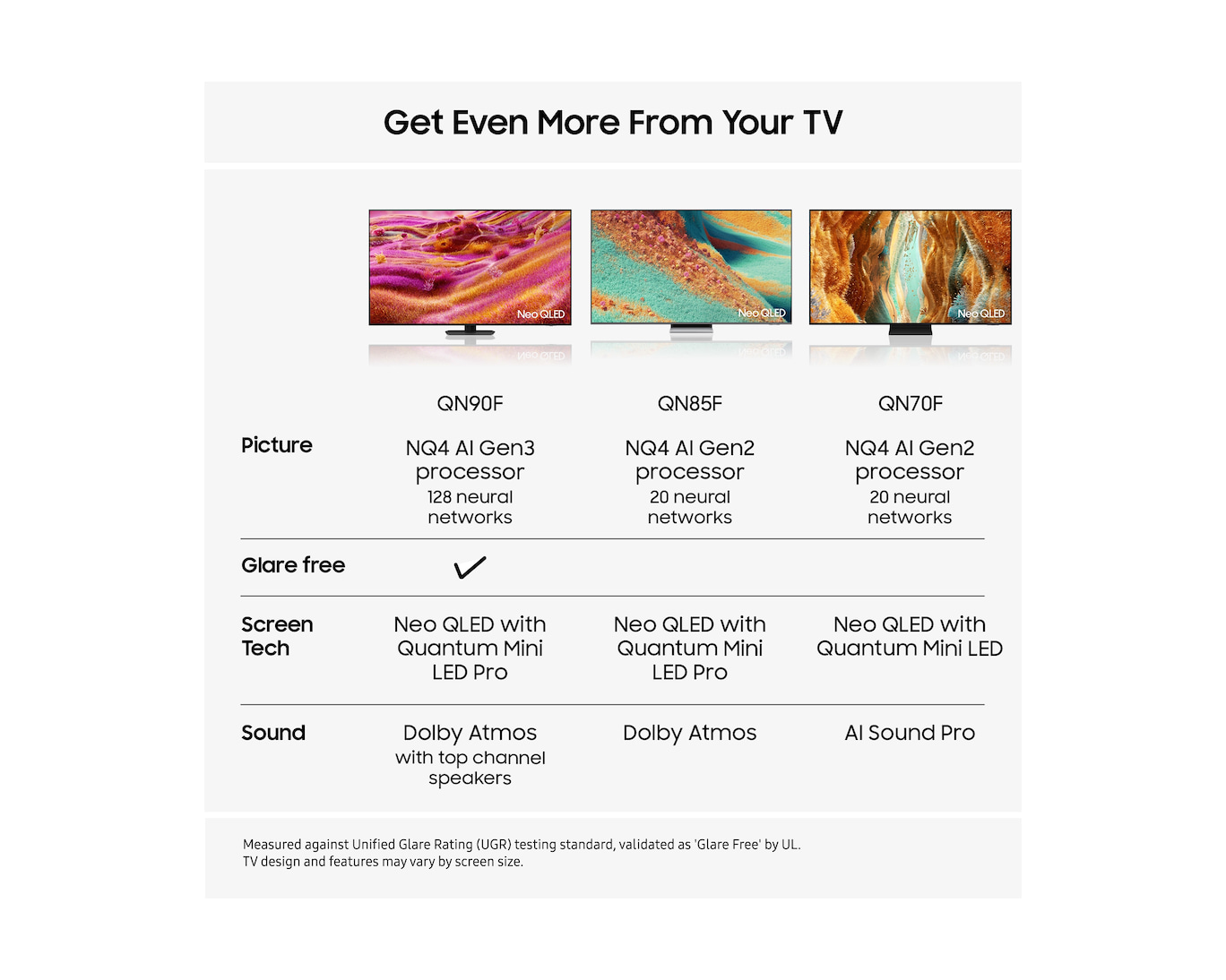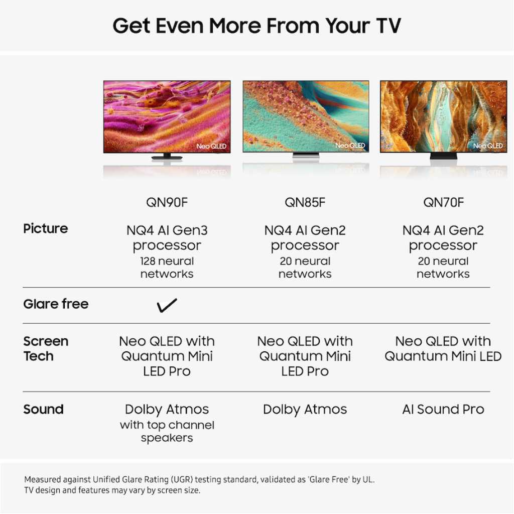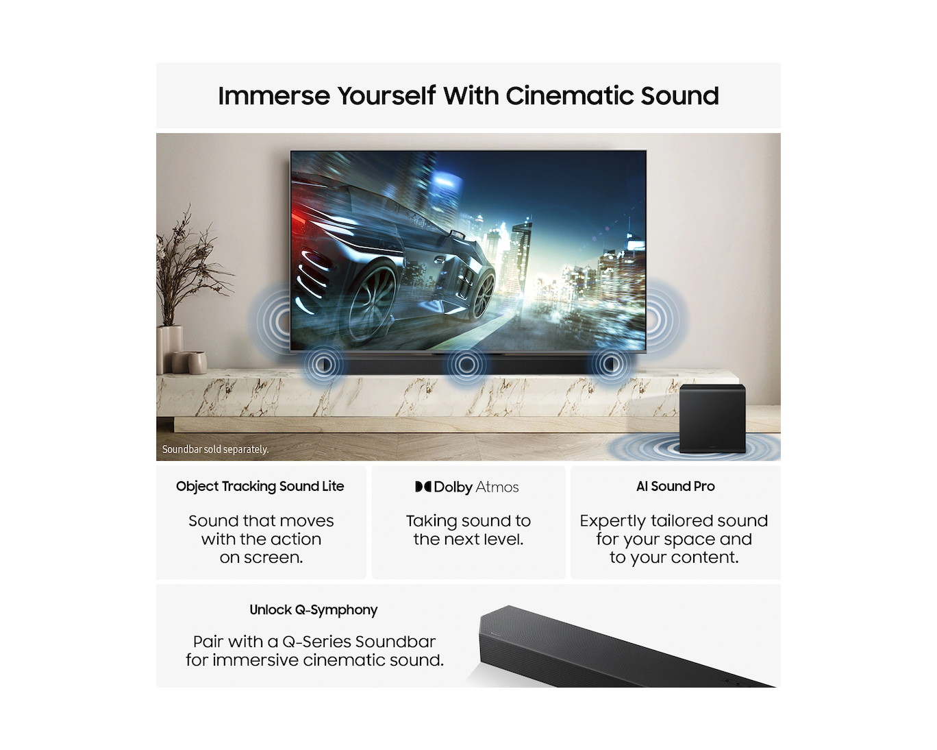 Key Features: NQ4 AI Gen2 PROCESSOR: Feel the full power of AI in 4K. This processor uses the power of 20 AI neural networks to optimize picture and sound quality. The result is superb performance, whether you’re streaming OTT services, playing your favorite video games or watching live sports. QUANTUM MATRIX TECHNOLOGY PLUS: Catch every detail with accurate, ultra-fine light control. Precise control over Quantum Mini LEDs allows you to enjoy great detail in both the darkest and brightest scenes. DOLBY ATMOS: A next level Dolby Atmos experience. Enjoy a next-level surround sound experience that immerses you deep inside the action. With Dolby Atmos, it delivers multi-dimensional audio for unbelievably realistic sound. NEO QUANTUM HDR+: Elevate 4K viewing with superb brightness and vivid colors. Elevate your viewing pleasure with superb brightness and dynamically adaptive scenes in 4K resolution. Neo Quantum HDR+ is up to 2 times brighter than Neo Quantum HDR, delivering a more vivid color experience in a higher dynamic range like none other. PANTONE VALIDATED: Enjoy a full range of authentic colors. As a trusted symbol of color fidelity by industry experts, ‘PANTONE Validated’ certifies the accurate expression of 2,140 PANTONE colors and 110 newly-added skin tone shades. So you can be sure that you’re getting a rich, true-to-life viewing experience.