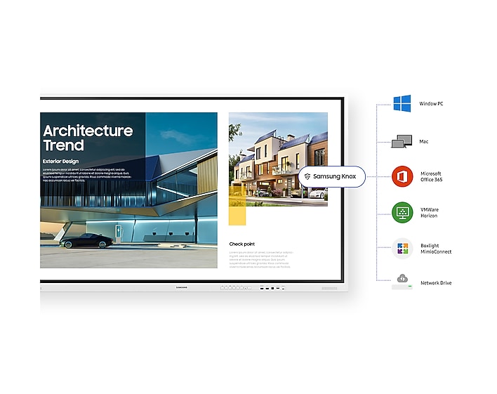 Key Features: Samsung WMB Series 4K UHD Flip Pro Interactive Display | LED Touchscreen. Drawing experience with 2,048 points of pressure with industry-best latency at just 26ms. A real-world writing experience with pen and brush mode, quick tool and palette. Multiple connectivity including HDMI, USB, USB Type-C, DP and easy screen sharing via wireless. Engaging learning experience with MimioConnect or Video call applications. 4K UHD 3840 x 2160 LED Panel 2 x HDMI, 4 x USB (3 x Front) 2048 Pressure Points & 26 ms Latency 20-Person Multi-Touch Adjustable Pen & Brush Modes Workspace Secured by Knox MagicINFO Remote Management Front Control Panel & Device Inputs Video Call Support with Optional Webcam Antimicrobial & Shatterproof Screen