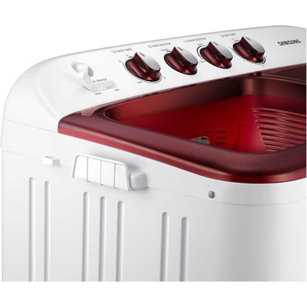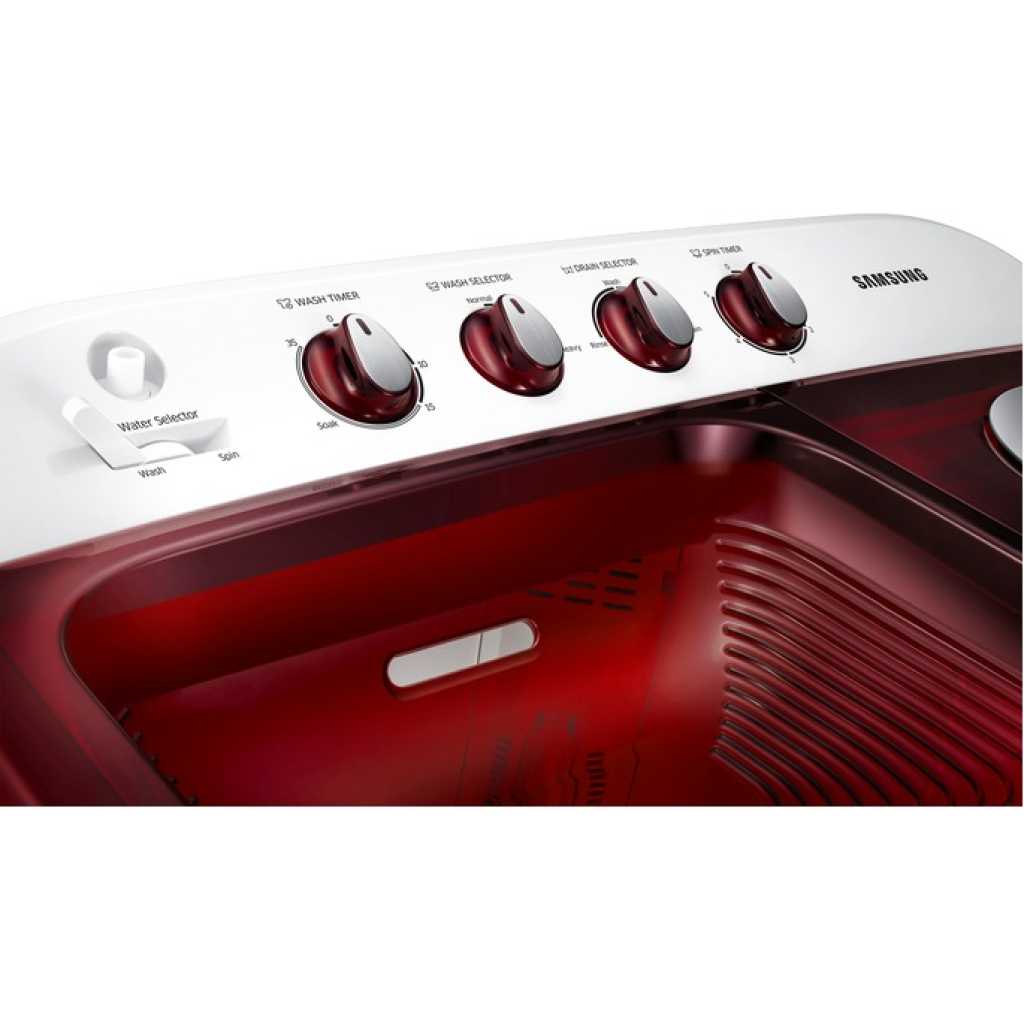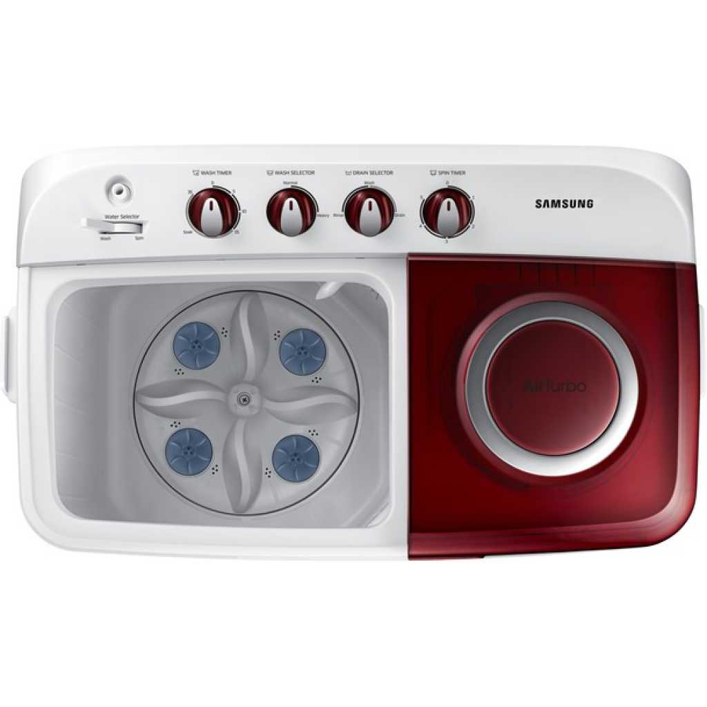Samsung 9kg Twin Tub Washing Machine Wash & Dry WT90H3230MG, Air Turbo, EZ Wash Tray, Rust Free, Powerful Cleaning – Light Grey. Washing Capacity: 9kg Air Turbo Spin-drying system that leaves the laundry fresh and well dried by powerful circulation EZ Wash Tray to handle delicate and Pre-wash Heavily Soiled clothes Non-corrosive rust-proof Plastic body Effortless Movement with incorporated hidden wheels Powerful cleaning Caster Wheel Dedicated EZ Wash Tray The dedicated EZ Wash TrayTM provides a convenient space to hand-wash delicate items and pre-wash heavily soiled clothes, rather than having to find a separate area or bend over a faucet.