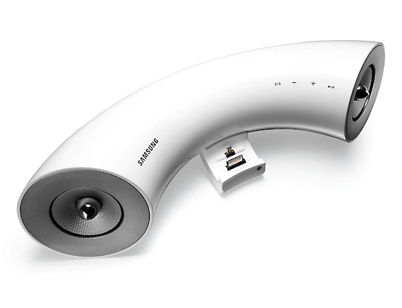 Key Features: Enjoy superior audio thanks to stylish horn design Get a streamlined and tidier look with hidden dock Play music wirelessly using Bluetooth connectivity Connect Samsung devices as well as Apple products