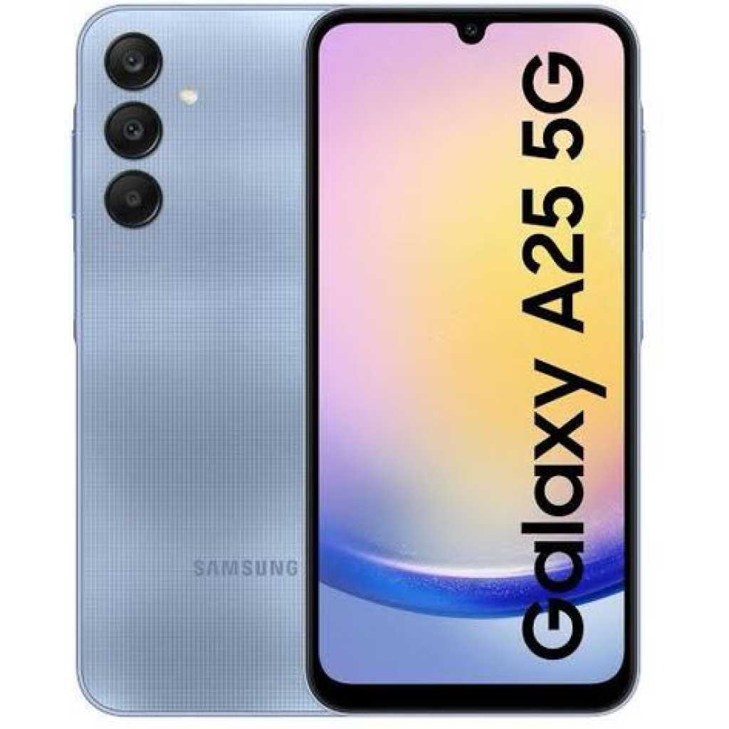 Key Features: Samsung Galaxy A25 5G 6.5″ 8GB RAM 256GB ROM 50MP 5000mAh – Blue NETWORK Technology: GSM / HSPA / LTE / 5G SIM: Hybrid Dual SIM (Nano-SIM, dual stand-by) Size: 6.5 inches PLATFORM: OS Android 14, One UI 6 Internal: 256GB 8GB RAM MAIN CAMERA: Triple 50 MP COMMS: WLAN Wi-Fi 802.11 a/b/g/n/ac, dual-band, Wi-Fi Direct Bluetooth: 5.3, A2DP, LE USB: USB Type-C 2.0 BATTERY Type: 5000 mAh, non-removable