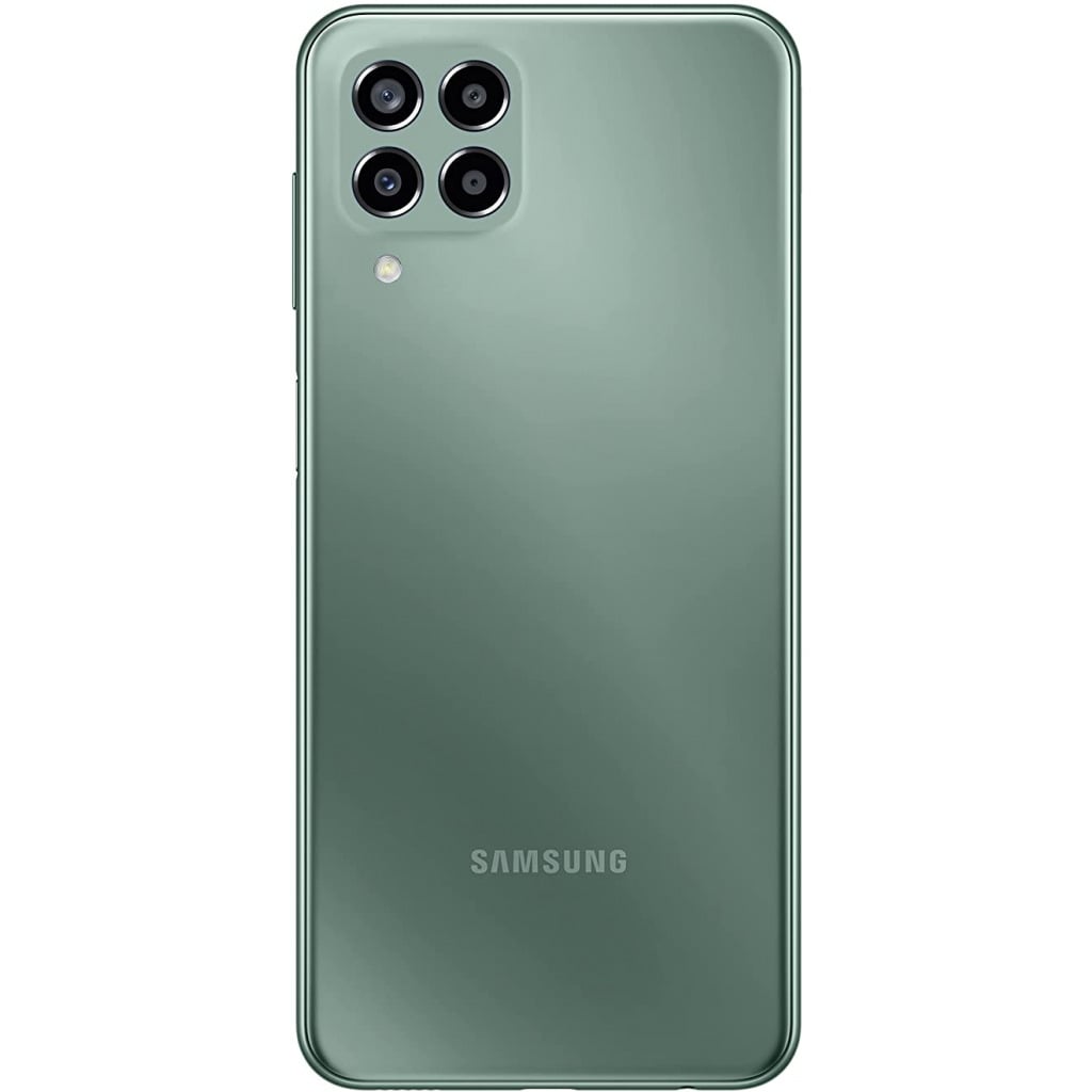 Galaxy M33 5G Up for every game 5nm Octa-core processor Galaxy M33 5G features a mighty 5nm Octa-Core processor. Power up and enjoy impeccable speed and performance with a device that’s up for it all. Up for every game Image simulated and for representational purposes only. Basis the publicly available information, Segment Best amongst devices in the same price band. Up for multitasking RAM Plus Galaxy M33 5G intelligently reads your usage pattern to provide up to 16GB virtual RAM, whenever you need it, ensuring your phone is up for it all, be it multi-tasking or gaming. Up for multitasking *8GB RAM model will support up to 8GB of internal storage and 6GB AM model will support up to 6GB of internal storage that can be used as virtual memory to improve app performance. Image simulated. For representational purposes only. Up for everlasting entertainment 6000mAh Battery Be it gaming or binge-watching or charging other smartphones, the whopping 6000mAh battery with reverse charging is up for it all. Enjoy 25W* fast charging that gives you more power in less time. Up for everlasting entertainment *As per Samsung effort to minimize environmental effect, charger is not included in the box. Image simulated. For representational purposes only. Up for crystal clear conversations Voice Focus Say goodbye to unclear conversations even in the noisiest of environments. The Voice Focus on the Galaxy M33 is up for it all, be it cutting out loud ambient noise or amplifying the receiver’s voice, so that you hear every little detail. Up for crystal clear conversations Up for crystal clear conversations Voice Focus Say goodbye to unclear conversations even in the noisiest of environments. The Voice Focus on the Galaxy M33 is up for it all, be it cutting out loud ambient noise or amplifying the receiver’s voice, so that you hear every little detail. Up for crystal clear conversations Next Up for crystal clear conversationsUp for crystal clear conversations Image simulated. For representational purposes only. Up for keeping it cool Power Cool Technology Whether you’re hooked on to your favourite game or switching between apps, the Power Cool Technology keeps your Galaxy M33 from getting heated so it’s always up for it all. Up for keeping it cool Image simulated. For representational purposes only. Up for smooth experiences 120Hz Refresh Rate The 120Hz refresh rate along with a 16.72cm* FHD + Infinity-V display makes your everyday content look sharp while giving you an immersive and super smooth viewing experience. Plus, Gorilla Glass 5 keeps your screen protected so it stays up for it all. Up for smooth experiences Up for immersive viewing 16.73cm* FHD+ Display Up for immersive viewing Up for drop & scratch resistance Gorilla Glass 5 protection Up for drop & scratch resistance Next Up for smooth experiencesUp for immersive viewingUp for drop & scratch resistance *Screen size measured diagonally as a full rectangle without accounting for the rounded corners. Image simulated. For representational purposes only. Up for seamless connection Auto Data Switching Galaxy M33 is up for letting you make and receive calls or use data from your secondary SIM, even when your primary SIM is in a no network area so that your loved ones can stay in touch with you wherever you go. Up for seamless connection Image simulated. For representational purposes only. Up for perfect moments 50MP Camera The 50MP Quad camera lets you capture all the drama your social feed needs. Galaxy M33 stays up for it all by letting you click perfect shots to savour the moment or get creative with Fun Mode. Up for perfect moments Up for flawless selfies 8MP Front Camera Capture the best of you with the 8MP Front Camera Up for flawless selfies Up for picture perfect memories Perfect any shot with a single tap using the Object eraser. It’s up for giving you the perfect memories by editing out everything that you don’t want in your pictures. Up for picture perfect memories Up for bright captures Temporal Noise Reduction enhances your videos to make them look noise free, allowing you to shoot clear videos even in low light. Up for bright captures Next Up for perfect momentsUp for flawless selfiesUp for picture perfect memoriesUp for bright captures Image simulated. For representational purposes only. Up for safety Knox Security Built into the phone’s hardware and software from the start, Samsung Knox protects your phone from the minute it is turned on. Offering multi-layered security, it ensures your phone is totally up for defending your most sensitive information from malware and malicious threats. Up for safety Up for privacy Alt Z Keep your data secure by seamlessly switching between public and private mode using Alt Z. Up for privacy Next Up for safetyUp for privacy Image simulated. For representational purposes only. Up for personalization One UI 4 Optimized for every screen size, One UI 4 is up for enhancing your smartphone experience. It lets you express yourself in a comfortable and intuitive way by allowing you to customize your phone to suit your taste. Up for personalization Up for heartfelt chats Vertical Keyboard Type up to 27 Indian languages easily with matra combination assistance. Up for heartfelt chats Up for every banter Grammarly Keep your grammar and spelling game on point with your new writing assistant. Up for every banter Up for the future Software Upgrades Galaxy M33 comes with 2 years of OS updates and 4 years of security updates, ensuring it’s up for the times ahead. Up for the future Next Up for personalizationUp for heartfelt chatsUp for every banterUp for the future Image simulated. For representational purposes only. Up for seamless face unlock Face Unlock Unlock your Galaxy M33 seamlessly with Face Unlock by simply turning it on and looking into the front camera. Up for seamless face unlock Up for seamless unlock Fingerprint The fingerprint sensor lets you unlock your phone with just a touch. Up for seam