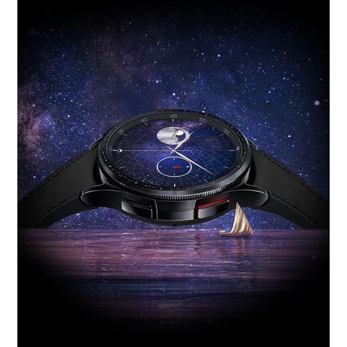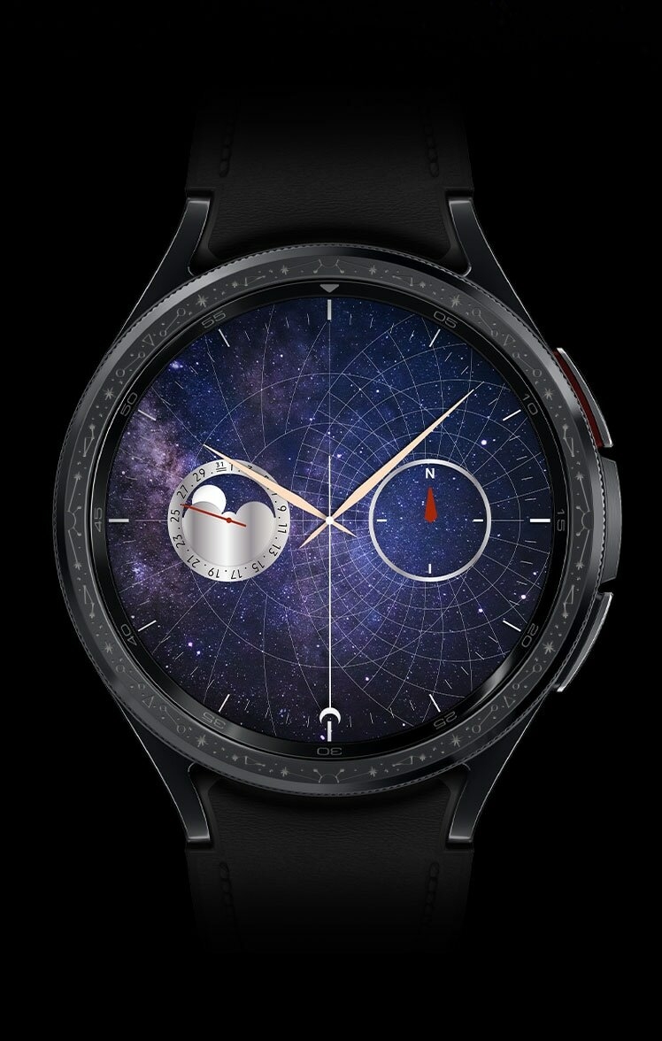 Galaxy Watch6 Classic Astro Edition BUY NOW Design Story An ode to the past Paying homage to the region’s glorious past and remarkable contributions to the advancement of timekeeping, our Astro-inspired watch honors the scientific legacy of that extraordinary time. For centuries, we held the universe in our hands. The Astrolabe took us to where our dreams dared. While we no longer look to the skies and stars to guide our adventures, the Astrolabe’s legacy finds new ways to inspire us. With the Galaxy Watch6 Classic Astro Edition, we embark on a journey towards an era of bold innovation and limitless possibilities. Software Design Future Astrolabe — Exclusive Watch Face COMPASS Navigate New Galaxies. The fundamental spirit of the Astrolabe as a guide embraces a new form through the compass complication placed directly on the dial. The compass that once guided explorers is here to set you on new adventures. MOONPHASE Indulge in Celestial Wonder. Celebrating the Astrolabe’s celestial wonders with a captivating moonphase complication, track the movement of the moon and the changing months directly from your wrist. SOLAR TRACKER From Dawn to Dusk. The solar tracker complication mirrors the sun’s movement, gracefully tracing its journey from sunrise to sunset— celebrating the sun’s central role in a traditional Astrolabe’s function. CALENDAR The calendar feature of the Astrolabe once gave meaning to the flow of time, allowing users to calculate the day of the month based on the position of the moon. Hardware Design Built for those who explore Astro inspired rotating bezel The bezel with a classic twist—the slim spinning bezel gives you more fluid scrolling experience on a larger screen. Its Astro-inspired engravings and an old-world charm that stands out against the modern design of the watch. Larger display The biggest screen on a Galaxy Watch yet—more space means more information at a glance and more room to express yourself. Experience enhanced visuals and clear motion graphics on a 30% larger display. The 15% thinner bezel and increased screen size create an aesthetically perfect display-to-bezel ratio—add extra space for every tap and swipe. Sapphire crystal glass Built for the everyday, and the tough day. The watch’s Sapphire Crystal glass display makes it resilient against daily wear and tear. It brings the enduring qualities of the Astrolabe to the watch with the tough display that’s expertly crafted with Sapphire Crystal glass to protect its timeless beauty. One-click band Emulating the Astrolabe’s versatility, we let you switch between bands to take your look from rugged to classy, depending on your mood. Press the band release button to change your straps—just a click to go from workout to go-out styles. The watch that never stops giving Do more with all-day battery Improve your sleep quality with detailed sleep tracking Personalized HR zone gets you fitter your way Navigate new worlds in a Snap Try Galaxy Watch6 Classic Astro Edition on Snapchat and experience an astral wrist makeover. Scan to try-on Galaxy Watch6 Classic Look your best. Get more done. That’s the dream. We’re making it a reality with our largest watch screen yet, custom exercise routines and sleep tracking — finished with a timeless aesthetic. Start your everyday wellness journey with a refined classic More screen. Thinner bezel. Experience enhanced visuals and clear motion graphics on a 20% larger display. The 15% thinner bezel and increased screen size create an aesthetically perfect display-to-bezel ratio — and extra space for every tap and swipe. Sapphire Crystal glass. Designed to withstand daily wear and tear. The display of Galaxy Watch6 Classic is expertly crafted with Sapphire Crystal glass to protect its timeless beauty. And the finishing has IP68 and 5ATM ratings, so you can keep your watch on through all your adventures. Embrace the time-defying style of a classic. Inspired by the iconic design of diving watches, the slim spinning bezel on Galaxy Watch6 Classic brings history into the future with more fluid, responsive scrolling for intuitive interaction with the screen. And the circular frame is crafted with sleek stainless steel to elevate every glance at the clock. Hands-on shooting, hands-free Pair your watch with Galaxy Z Fold5 to capture the healthy you up close or from a distance. Galaxy Z Fold5’s Flex mode and Camera Controller let you easily switch between photo and video mode, or zoom in and out, all from the comfort of your wrist. Then tap the shutter button on your watch to take a pic. Meet your Personalised HR Zone Your watch can evaluate your fitness capacity to determine your personal HR Zone. If there’s a specific HR zone you want to hit, you can set the goal manually. As you workout you’ll be alerted when you enter your target HR Zone, whether that’s fat burning, cardio or high-intensity training. Move out of the zone, and it’ll alert you too — letting you adjust your effort accordingly. Product information Network Technology: GSM / HSPA / LTE Body: Dimensions: 46.5 x 46.5 x 10.9 mm (1.83 x 1.83 x 0.43 in) Weight: 59 g (47mm), 52 g (43mm) (2.08 oz) Build: Sapphire crystal front, stainless steel frame SIM: eSIM MIL-STD-810H compliant* (does not guarantee ruggedness or use in extreme conditions) 50m water resistant (IP68) ECG certified Blood pressure monitor Compatible with standard 20mm straps Display: Type: Super AMOLED Resolution: 480 x 480 pixels (~453 ppi density) Protection: Sapphire crystal Always-on display Platform: OS: Android Wear OS 4, One UI Watch 5 Chipset: Exynos W930 (5 nm) CPU: Dual-core 1.4 GHz Cortex-A55 GPU: Mali-G68 Memory: 16GB 2GB RAM, No card slot Camera: None Sound: Loudspeaker: Yes 3.5mm jack: No Connectivity: WLAN: Wi-Fi 802.11 a/b/g/n, dual-band Bluetooth: 5.3, A2DP, LE Positioning: GPS, GLONASS, GALILEO, BDS NFC: Yes Radio: No USB: No Sensors: Accelerometer, gyro, heart rate, barometer, altimeter, compass, SpO2