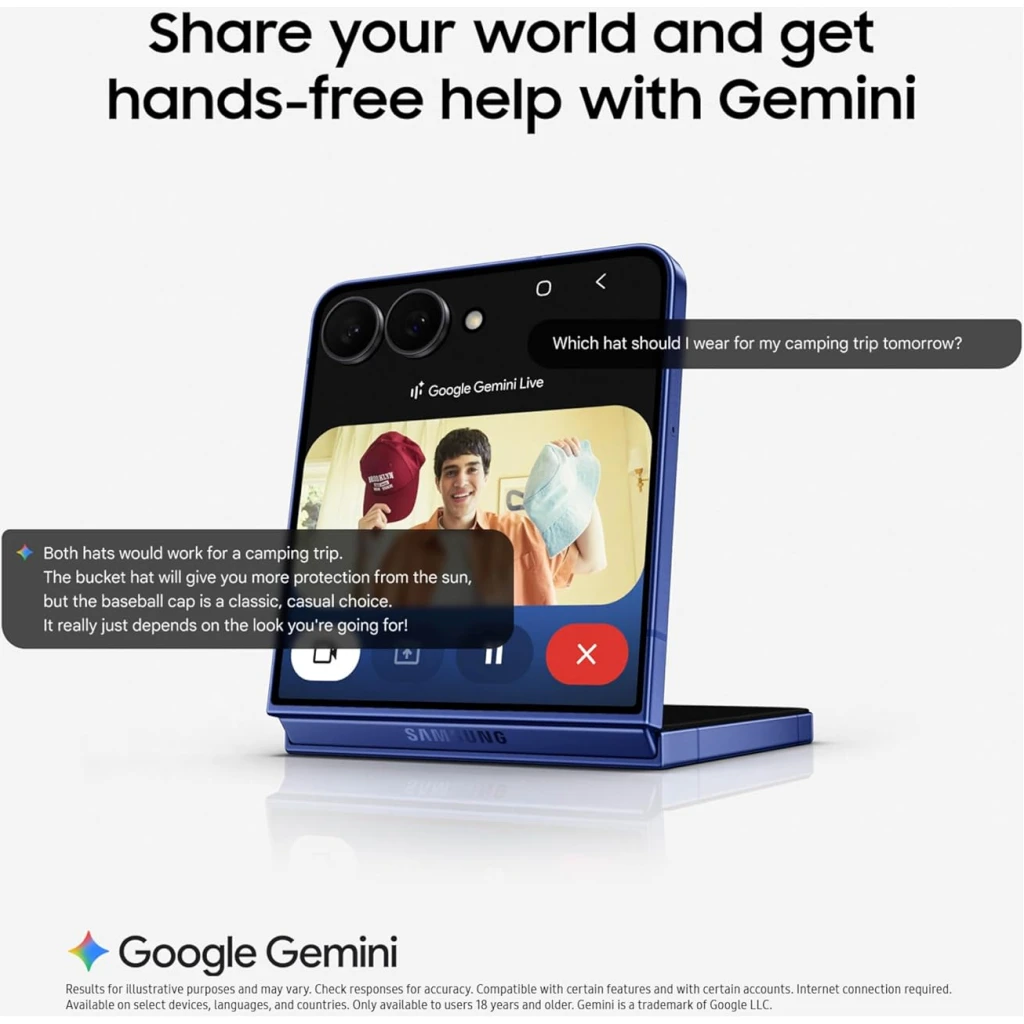 Introducing our thinnest, toughest, and most advanced Galaxy Z Flip ever—unparalleled beauty and performance that perfectly fits your lifestyle and your budget. The stunning edge-to-edge exterior display is housed in a durable body that’s slimmer whether closed or open. Enjoy richer, more detailed selfies that you can preview on the larger Cover Display. Capture the details of every moment with the high-resolution 50MP camera and let the next-generation ProVisual Engine do the rest. It enhances color and detail for greater clarity, highlighting skin tones and textures. You can also use custom filters based on AI learning to add finishing touches and make your photos unique. The Flip’s advanced processor powers everything from the battery to the display, ensuring it runs as fast as you need, for as long as you need it. Whether you’re streaming, gaming, or editing your latest video. The 4300mAh battery and mDNIe technology are optimized by the powerful processor, so this Flip is ready for hours of uninterrupted entertainment.