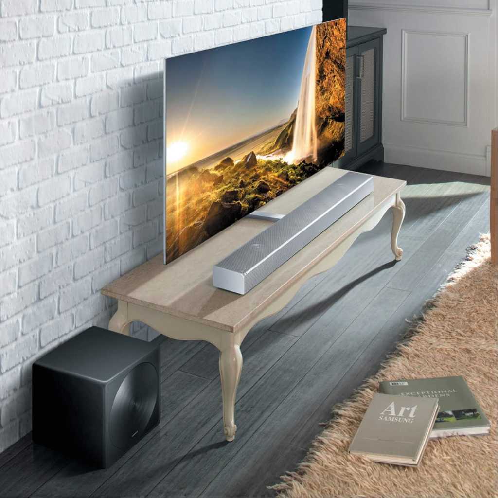 Samsung Sound Bar 3.0 HWMS651 The way sound should sound Music comes alive with your voice Can’t recall the title? Enjoy your Soundbar hands-free using Alexa voice control. Ask Alexa to play something by simply saying the title or a few lines of the song’s lyrics. No matter what kind of music you’re in the mood for, Alexa will find it. Feel the deep bass Hear deeper bass. Samsung’s Distortion Cancelling technology predicts and cancels out distortion before it happens, giving you deeper and more detailed bass without the need for a separate subwoofer. Wireless surround sound ready The Wireless Surround Sound Kit* lets you expand your surround sound system easily without the mess of wires. Together with your Soundbar, you can create a multi-channel system for a true surround sound experience. *Samsung Wireless Rear Speaker Kit is available for separate purchase (Accessory model: SWA-9000S). Sweet spot anywhere you sit Every spot is the sweet spot. Get consistently amazing sound everywhere in the room with the state-of-the-art Wide-range tweeter. Get real, with HD Audio Feel the sound and get into the action with stunningly realistic HD Audio. It preserves the quality and richness of the original sound through 96kHz/24 bit without down sampling. 9 built-in speakers The Soundbar is designed with 9 separate speakers, each with its own dedicated amplifier. Speaker configuration and alignment has been engineered and tuned by the Samsung Audio Lab in California to provide clear and accurate sound. Multi-speaker control Get the ultimate sound experience. Powered by exclusive Samsung technology, multi-array speakers move simultaneously for more powerful bass. The science of sound Tested and tuned at the renowned California Audio Lab, our audio engineers applied new methods of transduction and advanced computer modelling to give you perfectly balanced, room-filling sound. Wireless connection with TV Connect your Soundbar to your Samsung TV* easily with Bluetooth or Wi-Fi and remove the clutter caused by wires. You’ll be able to enjoy all your content instantly with clearer, more impactful sound. *Compatible with selected Samsung TVs. Please check in-store for more details. Seamless mount Keep it simple and clean. Mount the Soundbar directly on your TV without needing to make additional holes in your wall. Use just one cable to power both devices and remove the need for multiple messy wires. *Mount Kit (WMN300SB) accessory sold separately Gain control with one You don’t need several remotes. For power, volume, and even for the sound effects, you can control key Soundbar functions with Samsung TV remote through your TV’s UI. A truly seamless 4K experience Your UHD content, UHD Blu-ray Disk Player, and Soundbar Sound+ will be the perfect combination for incredible entertainment without missing out on amazing content quality. With 4K Pass-Through, your 4K content will play seamlessly with the addition of dynamic surround sound. Smart sound mode Select a sound mode, or let the Soundbar choose for you. It automatically analyses the sound and gives you the best sounds optimised for your content. Music streaming service Whatever songs get your heart beating, Soundbar Sound+ can stream them from your phone or tablet. Simply use Bluetooth or connect to Wi-Fi to play your music. Samsung Multiroom App With the Samsung Multiroom App, you’ll be playing your favourites in a new way – quickly and seamlessly. Specs General Feature Number of Channel 3 Ch Number of Speaker 9 Frequency Range 40Hz~20KHz Speaker Speaker Type Closed Enclosure Subwoofer Type (Active / Passive / Wireless, Built-in) N/A Subwoofer Enclosure Type N/A Subwoofer Driver Size N/A Audio Feature Amp Type Digital AMP Crystal Amplifier Yes Dolby Digital Dolby 5.1ch Dolby No DTS Digital Surround DTS 2ch Bluetooth HI-FI Codec No Surround Mode Surround Sound Expansion Number of Sound Modes (DSP) 5 UHQ 32bit Audio No Auto Sound Mode Yes Wide Range Tweeter Yes Distortion Cancelling Yes Video Feature 3D Video Pass Yes 4K Video Pass Yes HDR Yes Decoding Format AAC Yes MP3 Yes WAV Yes OGG Yes FLAC Yes ALAC Yes Connectivity Anynet+ (HDMI-CEC) Yes USB Host No Bluetooth Yes NFC No Bluetooth Power On Yes Number of HDMI Input/Output 1/1 Number of Audio Input Yes Number of Optical Input 1 Auto Power Link Yes Special Feature Compatible with SWA-8000S No Compatible with SWA-8500S No Compatible with SWA-9000S Yes Multiroom Hub Yes Multiroom App Yes BT App No One Power Yes Dimension Packing Type One Packing Net Dimension (Main Speaker) (W x H x D) 1060 x 78 x 130.5 Net Dimension (Wireless Module) (W x H x D) No Net Dimension (Sub Woofer) (W x H x D) No Gross Dimension (W x H x D): One Packing 1278 x 148 x 212 Weight Net Weight (Main Speaker) 6.20 kg Net Weight (Speaker) No Net Weight (Sub Woofer) No Gross Weight (One Packing) 7.90 kg Power Stand-by Power Consumption (Main) 4 W Stand-by Power Consumption (Subwoofer) No Operating Power Consumption (Main) 450 W Operating Power Consumption (Soundbar Only) 50 W Operating Power Consumption (for TV, Max) 400 W Operating Power Consumption (Subwoofer) No Free Voltage Yes Energy Star No Accessory ASC MIC No Antenna No Remote Controller Yes HDMI Cable No Optical Cable Yes Audio Cable No USB Cable No Wall Mount Bracket Yes TV Mount No Battery Yes