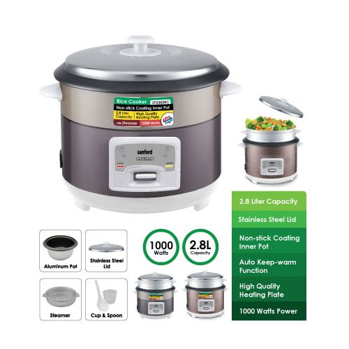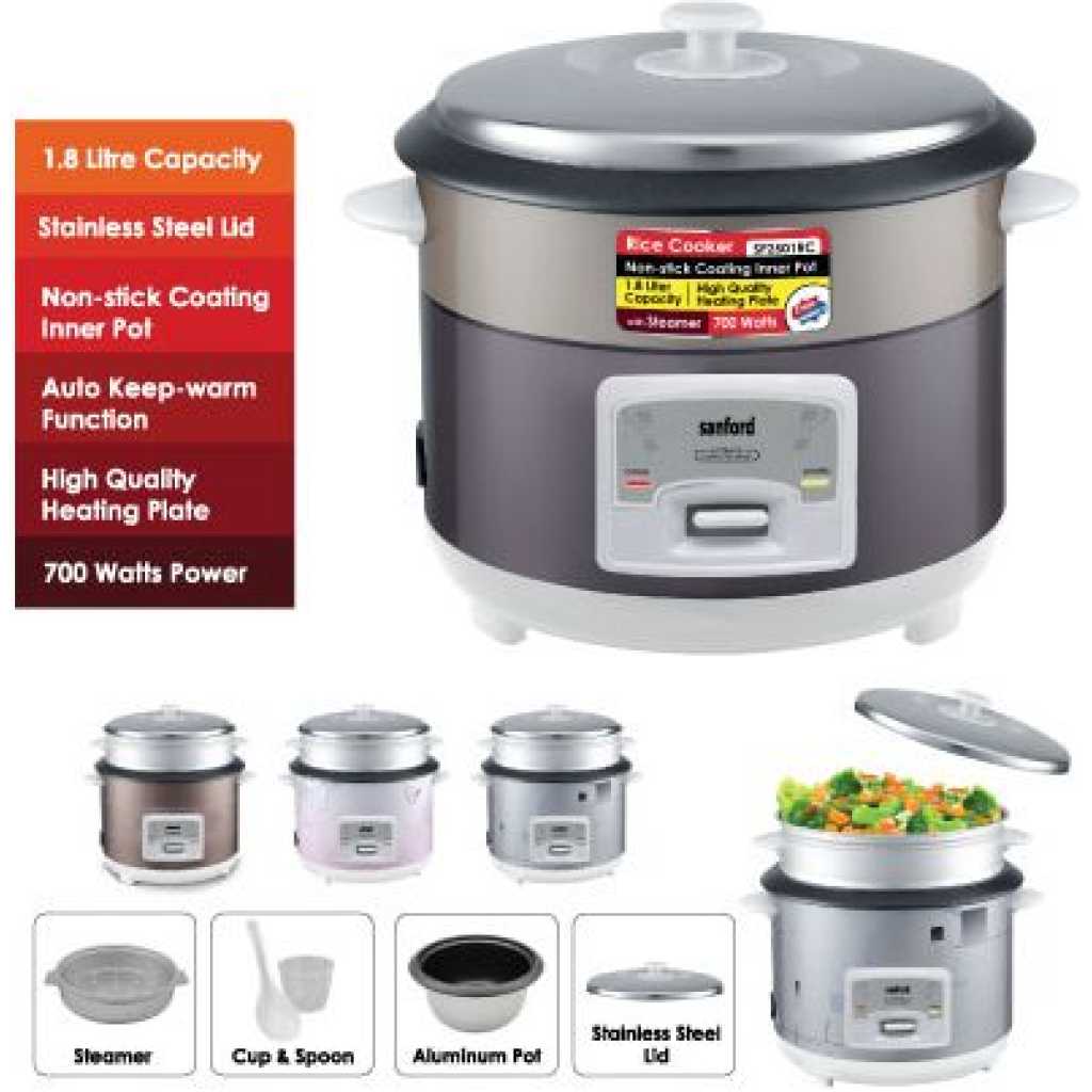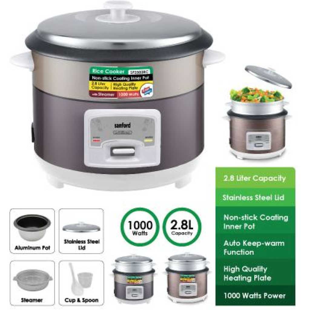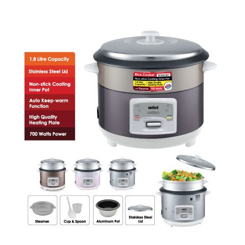 Key Features: Sanford 2. 8Litre Rice Cooker Steamer Pot- Multi-colour . 2.8 Litres Capacity Automatic Temperature Control Keep-warm Function Aluminium Alloy Pot Overflow and Scald Protection