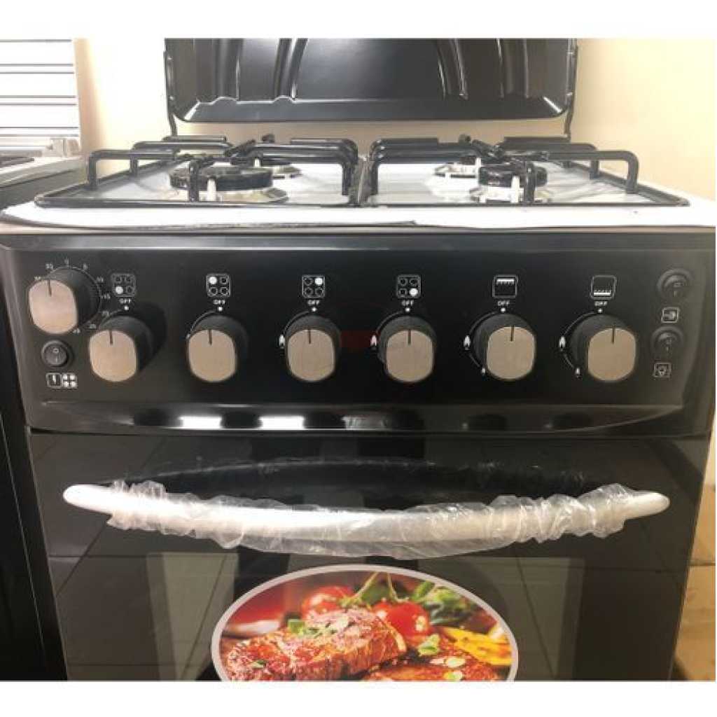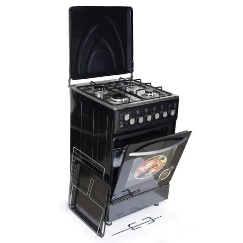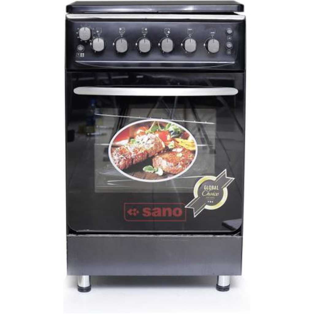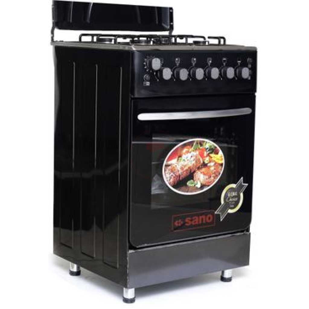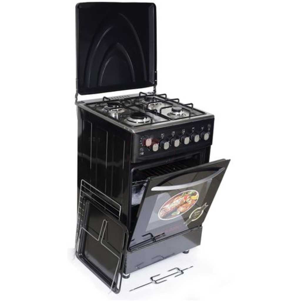 Key Features: Sano 55X55 Full Gas Cooker With Rotisserie, Electric Oven & Grill, Auto Ignition, Oven Lamp, Timer, 2 Oven Trays – Black. 4 gas burner Rotisserie Double burner oven Timer Ignition Oven Lamp Double glass oven door Adjustable stands Grill 2 oven trays Stainless steel top Black Inbuilt gas regulator 2 YEARS GUARANTEE AND 3 YEARS WARRANTY. Saves 30% gas