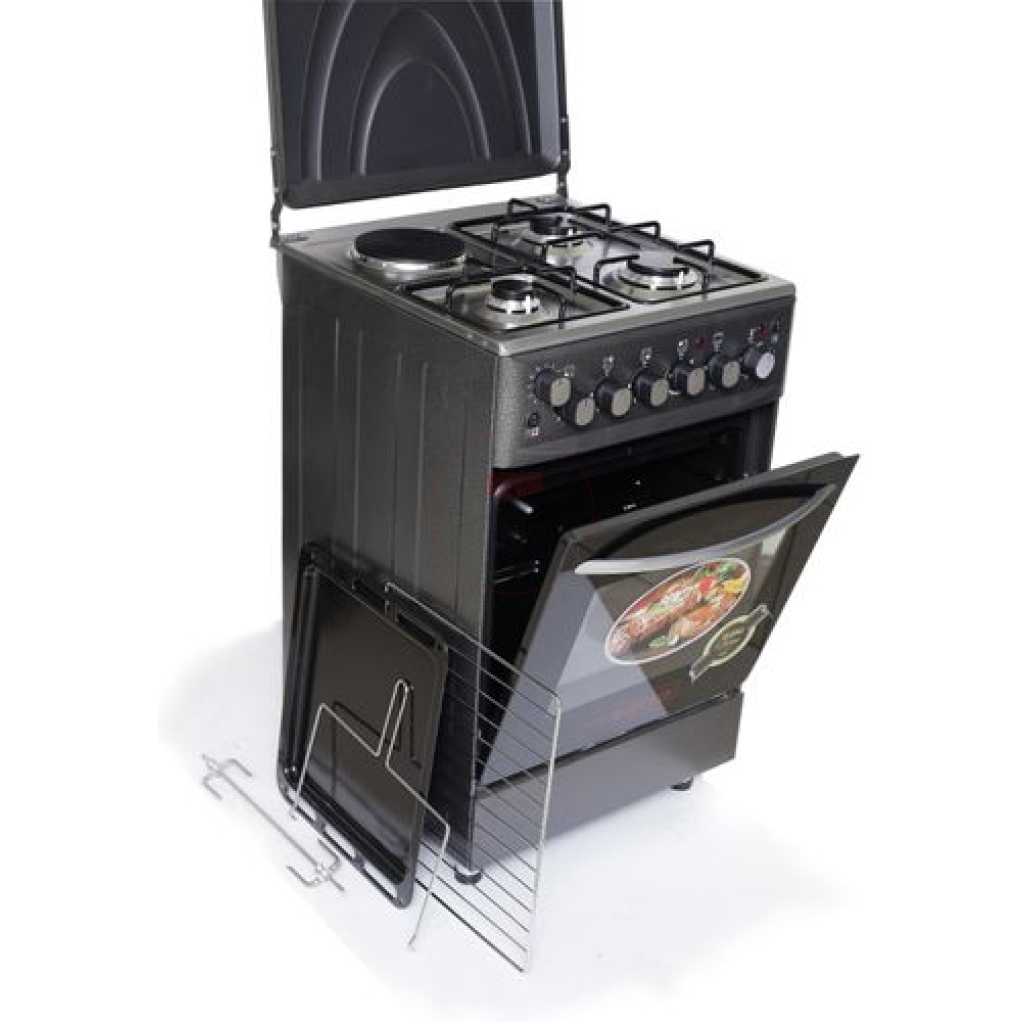 Key Features: Sano Cooker 55X55 3 Gas 1 Electric With Rotisserie, Electric Oven & Grill, Automatic Ignition – Brown. 3 gas burners 1 Hot plate Rotisserie Double electric oven Timer Ignition Oven Lamp Temperature control Double glass oven door Adjustable stands Grill 2 oven trays Stainless steel top and body Fireworks brown Easy clean 2 YEARS GUARANTEE AND 3 YEARS WARRANTY.
