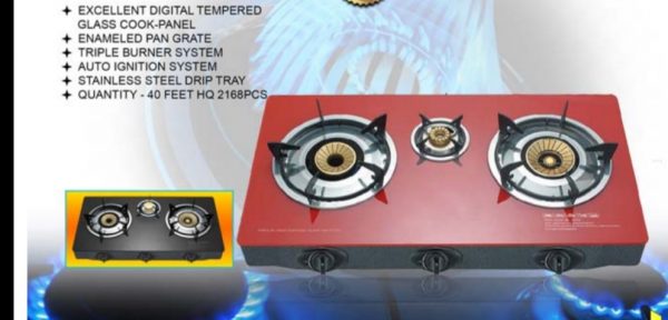 * Exellent digital tempered glass cooker – panel *Enemeled pan grate *Tripple burner system * Auto iginition system *stainless steal drp tray