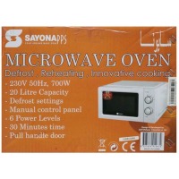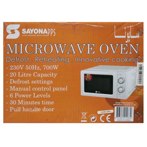 Key Features: Sayona SMO-2314 20L Microwave Oven – White Sayona microwave 20 liters New from Sayona Offen microwave / the all-new look Volume / 20L Timer thermostat control High quality limit 100% 6 levels of heat 700W / fast, economical and practical