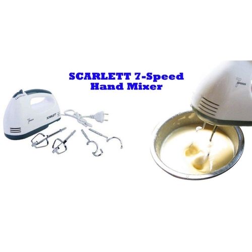 Key Features: Press easily 7 speeds with turbo function Easy to release beaters by press eject button The holder to hold the unit and beaters Beater hooks,mixer hooks ,SUS 304 egg whisk Modern design and multi-function 220-240V~ 50/60Hz 180W Size: 18 x 7 x 11 cm Color: white