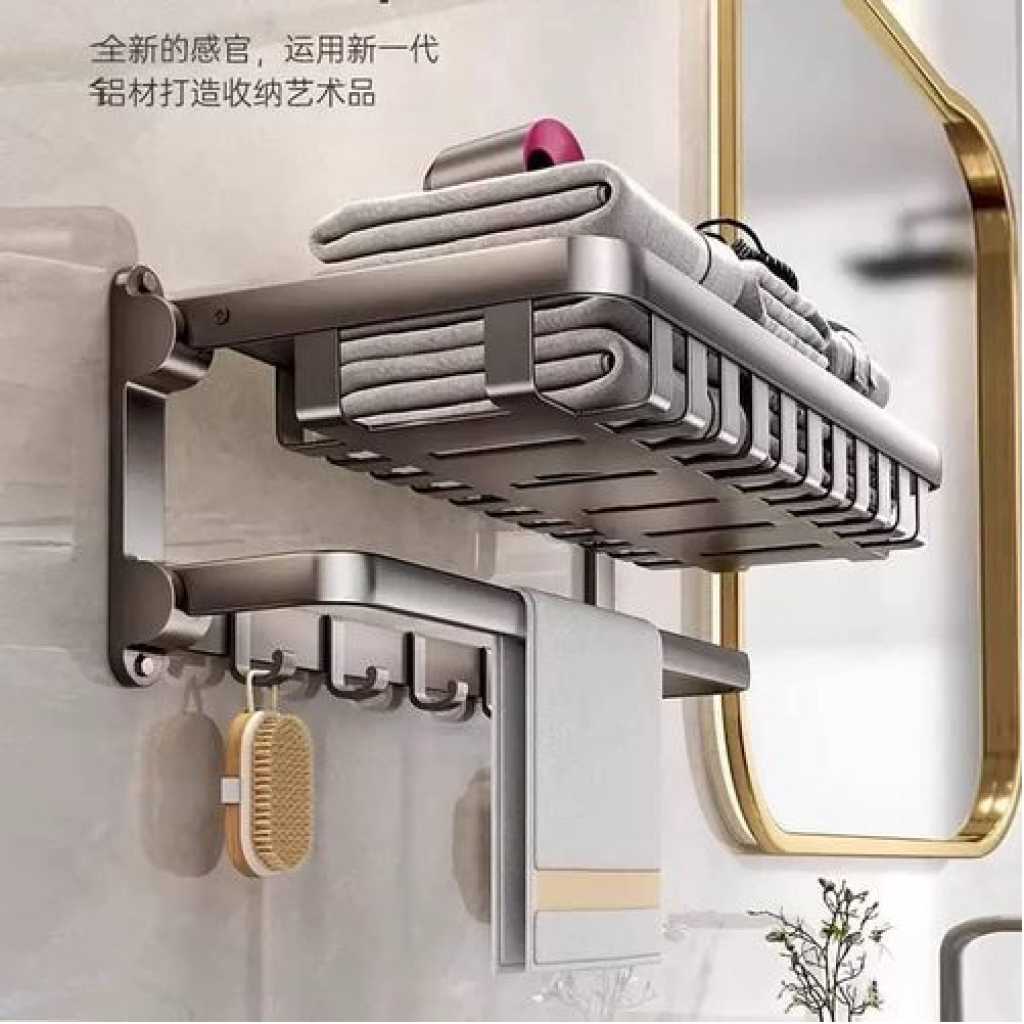 Key Features: MULTIPURPOSE BATHROOM SHELF – This towel bar can be installed in bathroom, shower, kitchen, closet, behind the door, etc. Brushed Aluminum finish is built to resist daily scratches and tarnishing. This spacious towel shelf can fit two folded bath towels on the shelf. And you can hang four face towels on towel bars below. REINFORCED TOWEL BAR – Recently upgraded this towel bar, so the part that connects the towel bar and the rack is much tighter and more stable. The upgraded towel bars provide you with additional hanging storage for your hand towels and bath towels. In addition, this towel shelf offers plenty of room for storing extra towels. DURABLE MATERAIL & HEAVY DUTY – Made of premium Space Aluminum with natural polished surface finish, performs better in anti-corrosion, anti-rust and anti-tarnish, ensuring the high strength and provides long-lasting durability, whether in the hall, kitchen or bathroom and laundry rooms. EXPAND HOME STORAGE SPACE – 23.62 inches long double bar towel racks and 9 racks designed for home and hotel bathrooms. Enough room to place multiple towels, bathrobes, and clothes and accessories. 9 holders to hang kitchenware, hang bathrobe, bath towel, pants and shirt, swimsuits, coats, bags, brush, shower caddy or other stuff. Kindly go through the pictures to ensure you have selected the desired size. MODERN DESIGN TOWEL RACK–Unique and stylish design add more modern elements for your kitchen and bathroom decoration. Perfect towel racks for bathroom organizer and storage purpose. Double towel racks is a Great gift idea for men, women, mom, home and family. Excellent choice for Seasonal, Christmas and New Year gift in gift box packaging.