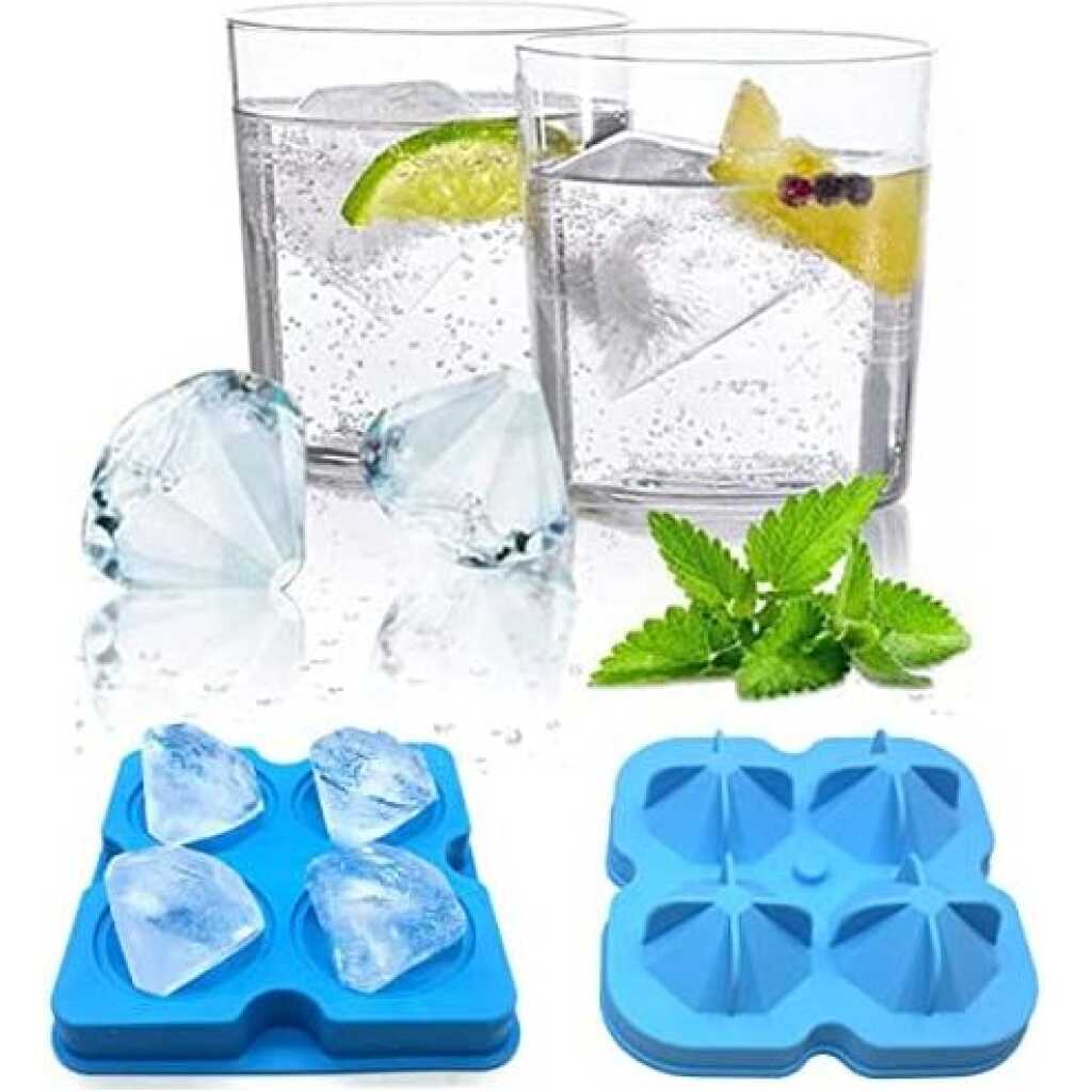 Key Features: Silicone 4 PC Diamond Ice Cube Mould Tray For Whisky Cocktail Water Juice. Ice cube tray Color: Black, Material: Silicone 【MULTIPLE USES & DIY SNACKS】: Our diamond ice cube molds are perfect for chilling all kinds of craft drinks (bourbon, cocktail, whiskey, scotch, beer, beverage, juice, etc.). Ideal for making healthy and diverse novelty ice cubes by putting different fruits into each ice tray. You can also use them to make your special snacks (puddings, chocolate, ice-lolly, etc.). Besides water, you can fill the ice mold with milk, coffee, and juice to make different flavors of ice cubes. 【BPA FREE & DURABLE & RESUABLE】: These funny cube ice molds are made of premium food-grade silicone, 100% ensuring absolute food safety. The temperature tolerance is from -40℃(-40℉) to 230℃(446℉). It is safe to put these ice cube molds & trays in the microwave oven and dishwasher. 【EASY TO USE & RELEASE】: These silicone ice cube trays are non-stick, stackable, and flexible. Just fill ice trays with water and close the upper and lower tray tightly, then use the small funnel to fill up the water to the top and put ice molds in the freezer for around 6-8 hours. After freezing, twisting, and pushing the bottom of the molds, the novelty diamond shapes whiskey ice cubes can be easily removed. 【WHAT YOU WILL GET】: 2 sets of diamond ice molds + 1pc funnel. Making 4pcs big diamond ice cubes per mold, so you can make 8pcs diamond-shaped ice cubes for whiskey at one time. Ideal gift choice for you.