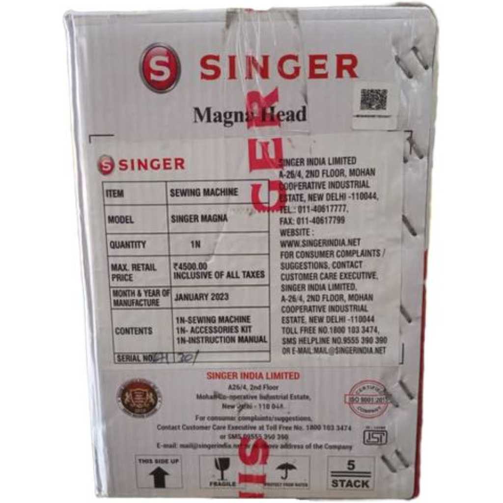 Singer Original Sewing Machine full set with Katwe Made Table Stand Singer magna straight stitch sewing machines are made from very high quality raw material which ensures hassle-free work performance at its user end. The Set includes a sewing machine top, toolbox, and Table Stand.