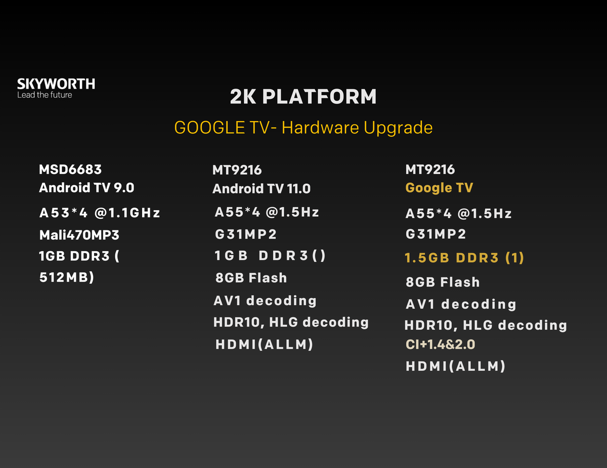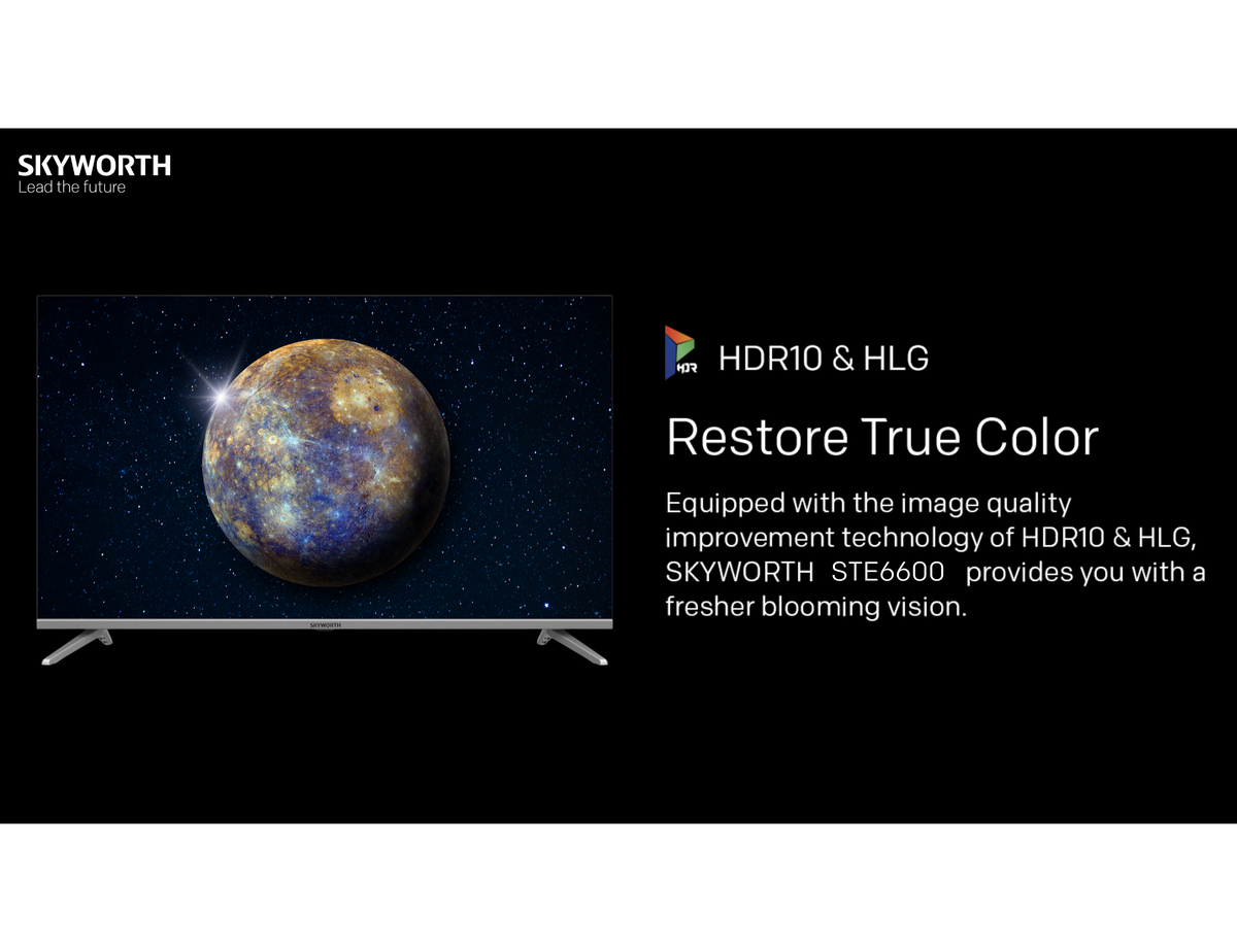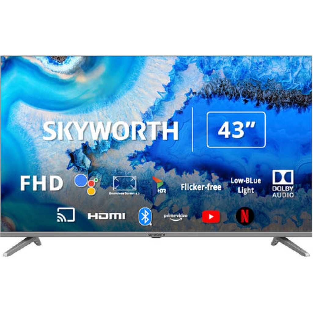 Skyworth 43″ STE6600 FHD Smart Google TV. – Google TV System with Google Play Store: Yes – DMR: 60Hz – Response Time: 8.5ms – DDR: 1.5GB – Flash: 8GB – Google Assistant: Yes – Netflix/Showmax/DSTV/Prime Video/Disney Plus: Yes (Subscription required) – YouTube/YouTube HDR: Yes – HDMI CEC & ARC: Yes – DTV Receiving System: DVB-T2/T/C – Brightness: 200nit – Colour Gamut:68% NTSC – Contrast Ratio: 3000:1 – Game Mode: Yes – Dolby Digital/Dolby Digital Plus: Yes Terminal Specifications – RF Input (3.5mm): 1 – Composite Input: 1 – AV Output (RCA) – HDMI Input: 2 (HDMI 1.4) – SPDIF Output: 1 (Optical) – LAN: 1 – USB (Multi -media): 2 (USB 2.0) – WIFI: 2.4G/5G; 2T2R – Bluetooth: Ver 5.1. Input & Output – Updating Interface: USB; Internet – EPG: Yes – Subtitle: Yes – Bluetooth: Yes Sound Specification – Maximum Output: 2 x 8W – Speaker Type: Non-detachable (down) – HDMI CEC & ARC Power Specifications – Power Supply: AC100-240V; 50/60HZ – Standby power: <0.5W – Power Consumption: 74W Dimensions & Weight – Dimension with stand (mm) 954.5 x 211.8 x 603 – Dimension w/o stand (mm) 954.5 x 86.9 x 558.5 – Box Dimension (mm): 1060 x 145 x 645 – Weight (Gross)(Kg): 8.4 – Weight (Net)(Kg): 6 What’s in the box – Stand: Yes – Remote Control: Yes Key Features: Skyworth 43″ STE6600 FHD Smart Google TV. – Google TV System with Google Play Store: Yes – DMR: 60Hz – Response Time: 8.5ms – DDR: 1.5GB – Flash: 8GB – Google Assistant: Yes – Netflix/Showmax/DSTV/Prime Video/Disney Plus: Yes (Subscription required) – YouTube/YouTube HDR: Yes – HDMI CEC & ARC: Yes – DTV Receiving System: DVB-T2/T/C – Brightness: 200nit – Colour Gamut:68% NTSC – Contrast Ratio: 3000:1 – Game Mode: Yes – Dolby Digital/Dolby Digital Plus: Yes