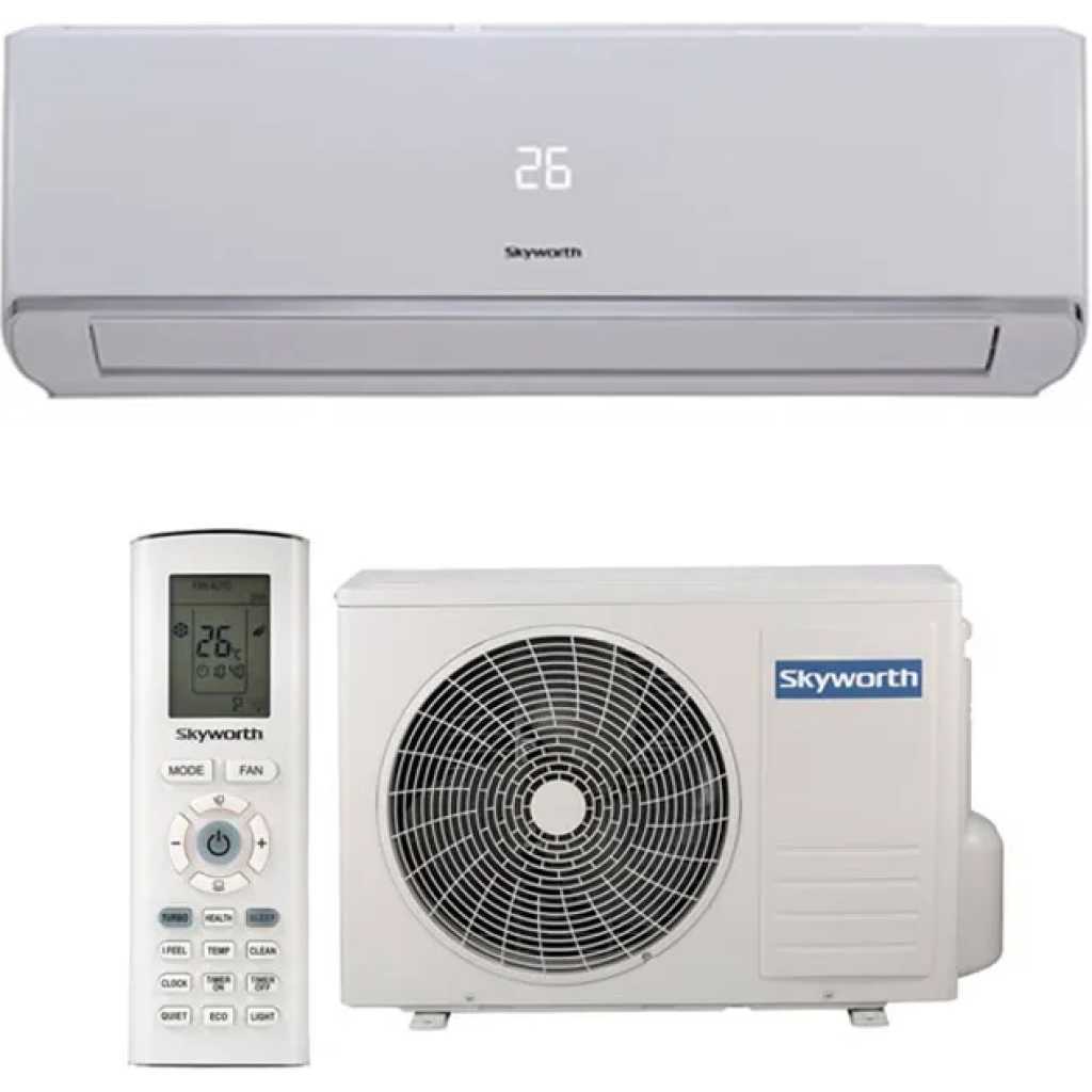 Key Features: SKYWORTH 9000 BTU AIR CONDITIONER INVERTER Elevate your cooling experience with the SKYWORTH 12000 BTU A/C INVERTER. Enjoy energy-efficient and cleaner air with R32 Eco Friendly inverter technology, BIO Filter, and Golden Hydrophilic Fin. The sleek LED display, Inner Grooved Copper Tube, and Anti-Rust Outdoor Casing add a touch of luxury and practicality to your home