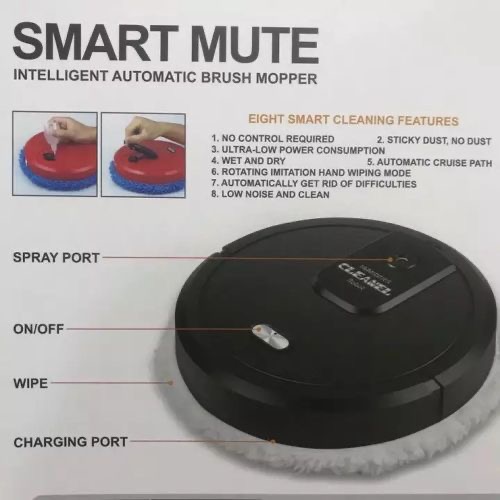 Key Features: Material: Plastic Color: Black High Quality NO control required Sticky dust, no dust Ultra-low power consumption Wet and Dry Rotating Imitation hand wiping mode Automatically get rid of difficulties Low noise and clean Automatic cruise path Charging time: 6 hours Working time: 90 mins Working noise: 50-60DB Ground Wipe Mode: random mode, rotating wiping mode