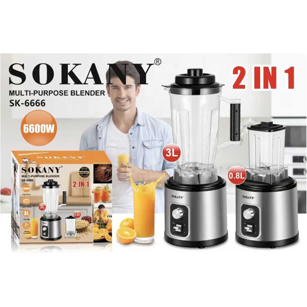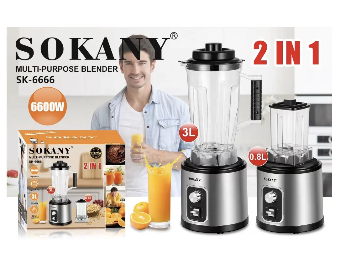 SOKANY SK-6666 3L Beauty Blender Machine Multifunctional Electric Juicer Blender Free Standing Blender 2 in 1 Key Features: SOKANY SK-6666 3L Beauty Blender Machine Multifunctional Electric Juicer Blender Free Standing Blender 2 in 1