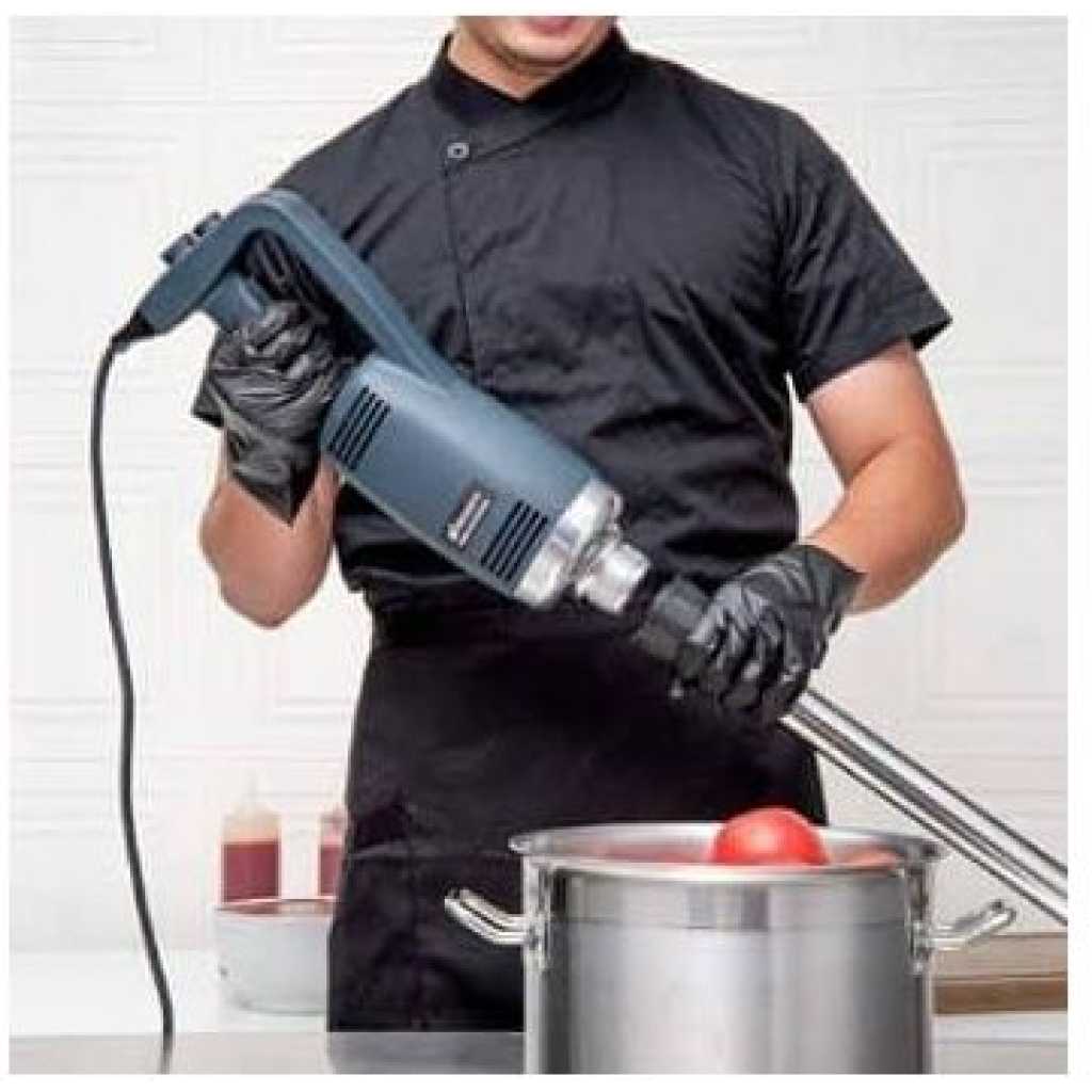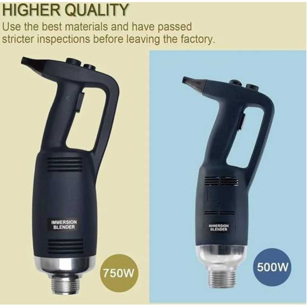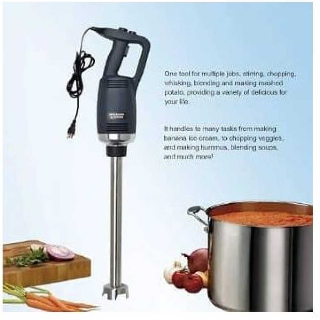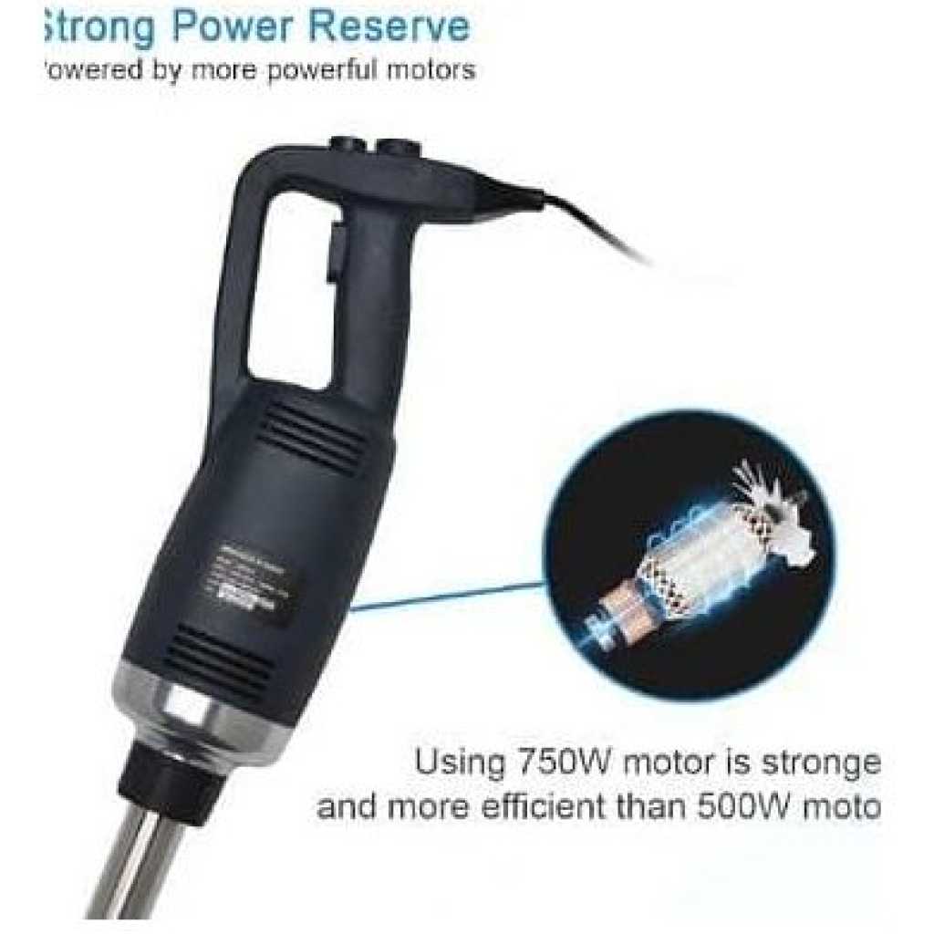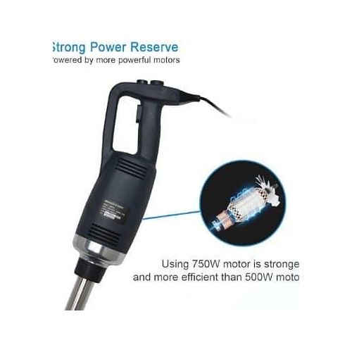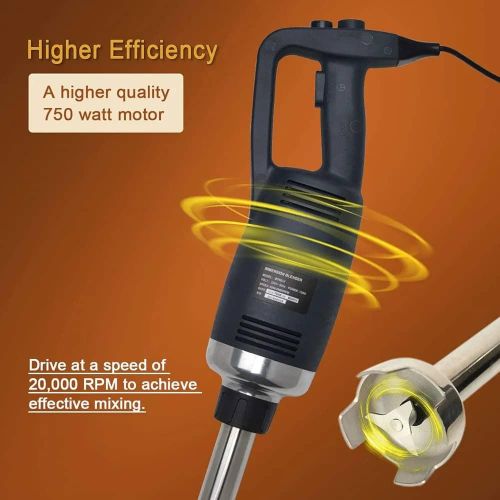 This new product, which is made of heavy-duty stainless steel and plastic, is perfect for making soup, sauces, and batters in a short time. (with 30-Gallon capacity) It is equipped with comfortable rubble handle and another hand grip for safely and conveniently operation. With the powerful motor(1-horsepower, 750W).The rotate speed can reach up to 8000-20000 RPM. It has a completely sealed 14-inch stainless steel shaft that can be easily removed and keep people safe during cleaning. The sharp stainless steel blade allows a continuous operation without getting stuck. specification: Voltage:110~120V/60Hz Power:750W Rotate Speed:8000-20000RPM (adjustable) Weight:2.81KG Size of body: 39.6cm * 11.6cm Diameter of stick: 3.5cm Length of stick: 35cm To ensure the safe operation of the blender. Be careful of the sharp blade. -Do not touch the blade or put your hands under the blender when you are ready to start up the machine or when it is under working condition. Please contact us if you have any question, we will offer you the best service and solve the problem ASAP. Thank you so much.Please contact us if you have any question, we will offer you the best service and solve the problem ASAP. Thank you so much. P.S. Recently some customers reflect that the blender didn’t work. Because they have not press the safety switch. You need to press the safety switch button and “ON” button simultaneously to get the machine to start working.-