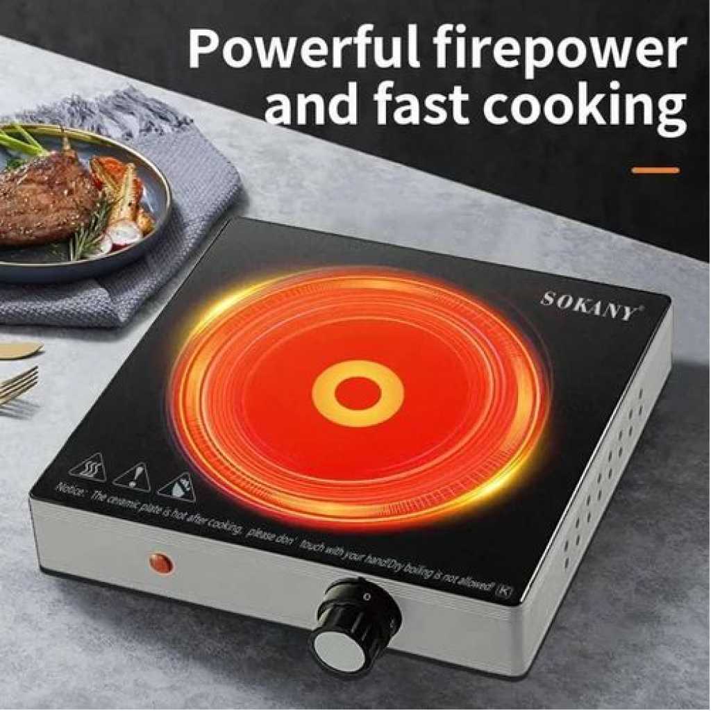Sokany Single Burner Energy Saving Radiant Electric Countertop Infrared Cooker Induction Stove- Grey Why would you cook one at a time when you can cook TWO at the same time instead? Get an amazing deal on this twin hotplate infrared cooker. With its stylish compact design and carry handles, you can bring this cooktop anywhere you want and enjoy a good meal with your friends or family. Made of toughened ceramic glass, it is featured with a 4-digit LED display, where a touch button control panel is provided for you to select your desired cooking functions, timer, temperature control, and others! It has a maximum power of 2400W and it is very durable.