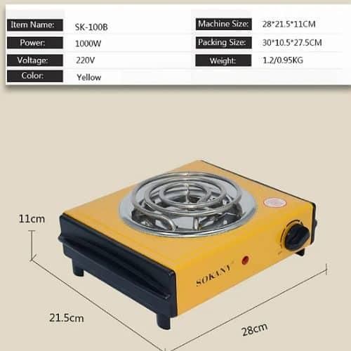 Key Features: Sokany Single Portable Electric Stove High-Quality Hot Plate Electric Cooking- Yellow Easy to use It comes in a suitable size to save space Suitable for everyday use Brand: Sokany Type: Hot plate Wattage: 1000 watts This product is made of stainless steel Suitable for all types of cooking Suitable for easy cooking