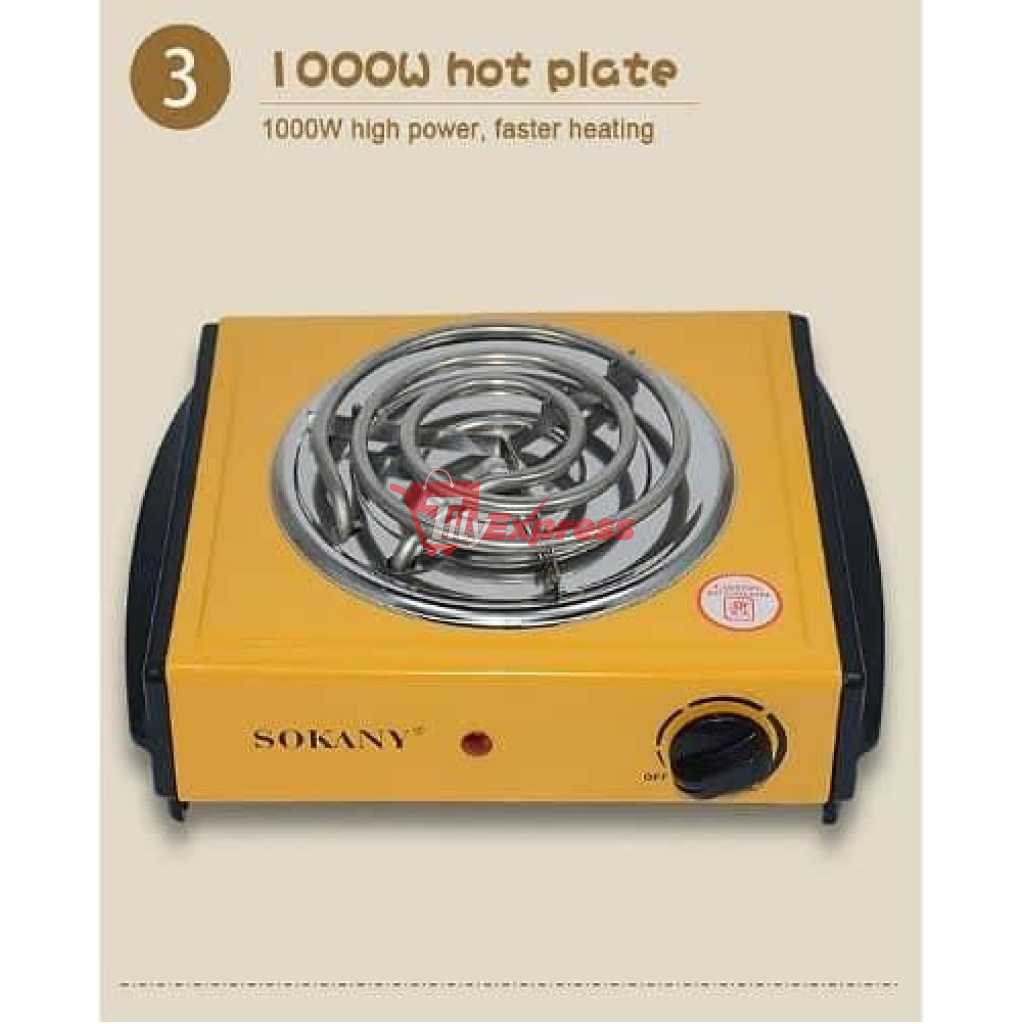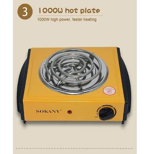 Sokany Single Portable Electric Stove High-Quality Hot Plate Electric Cooking- Yellow Easy to use It comes in a suitable size to save space Suitable for everyday use Brand: Sokany Type: Hot plate Wattage: 1000 watts This product is made of stainless steel Suitable for all types of cooking Suitable for easy cooking