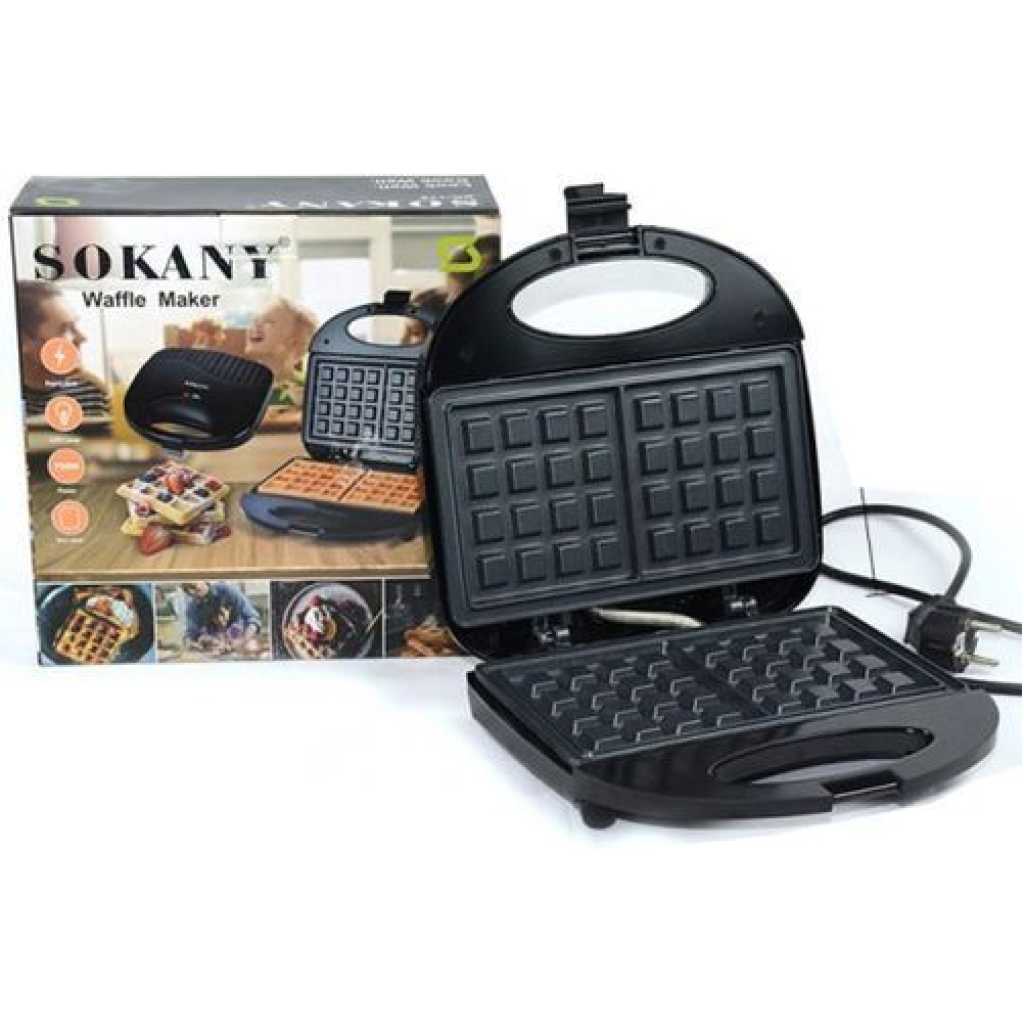 Key Features: Sokany Square Waffle Maker – Black Non-stick coated plate Cool touch Bakelite body Thermostat control Indicator lamp Over heat safety protection