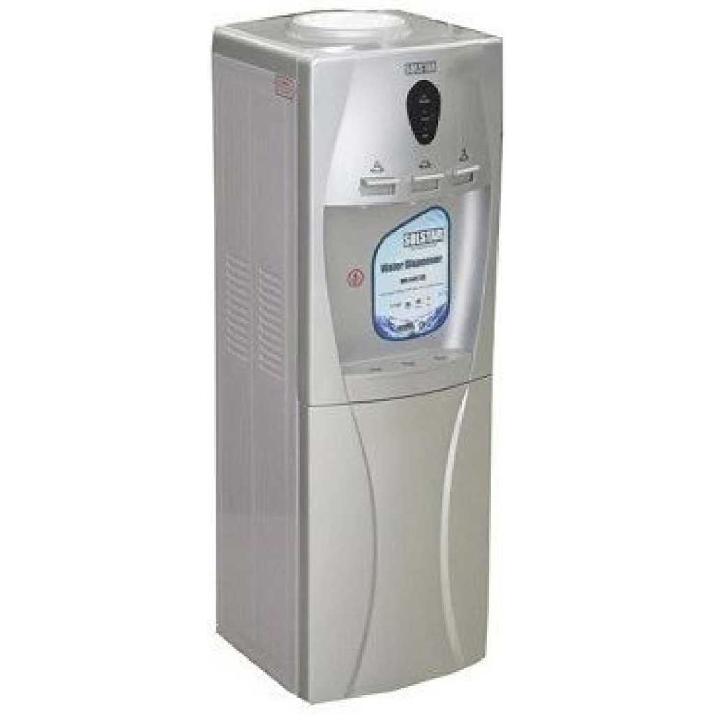 Solstar 3 Tap 12L Hot, Normal, And Cold Water Dispenser For Home And Office- Silver If you want to quench your thirst or enjoy a good cup of tea with water, choose this Solstar WD 64C SLB SS water dispenser. This machine has an internal tank. Comfortable, clean, and easy to fill, it also comes with accessories for connection to bottles and kegs. You don’t need to read the manual long to understand how to use this water cooler. To get water, just press the button. Underneath the machine, there is a drip tray to keep the platform dry. As for the removable grids, they have been designed to make cleaning the machine easier. There are two taps, one for cold water and one for hot water. You can install it in your kitchen, but also in your office. Anyone can use it intuitively, as it is very easy to understand. To keep your home or office clean, the device also has a drip tray. When the weather is very hot, enjoy the fresh water offered by this device.