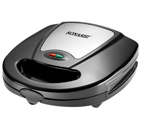 COOL TOUCH BODY STAINLESS STEEL TOP COVER SURFACE NON-STICK GRILL PLATE FOR EASY USE AND CLEANING OVERHEAT PROTECTION TWO INDICATOR LIGHTS FOR POWER ON AND READY CONVENIENT HANDLE LOCKING SYSTEM 220-240V ~ 50/60Hz 750W