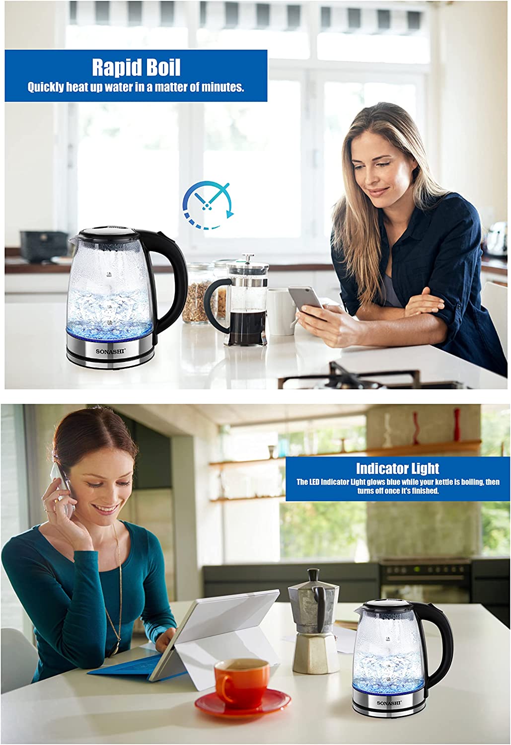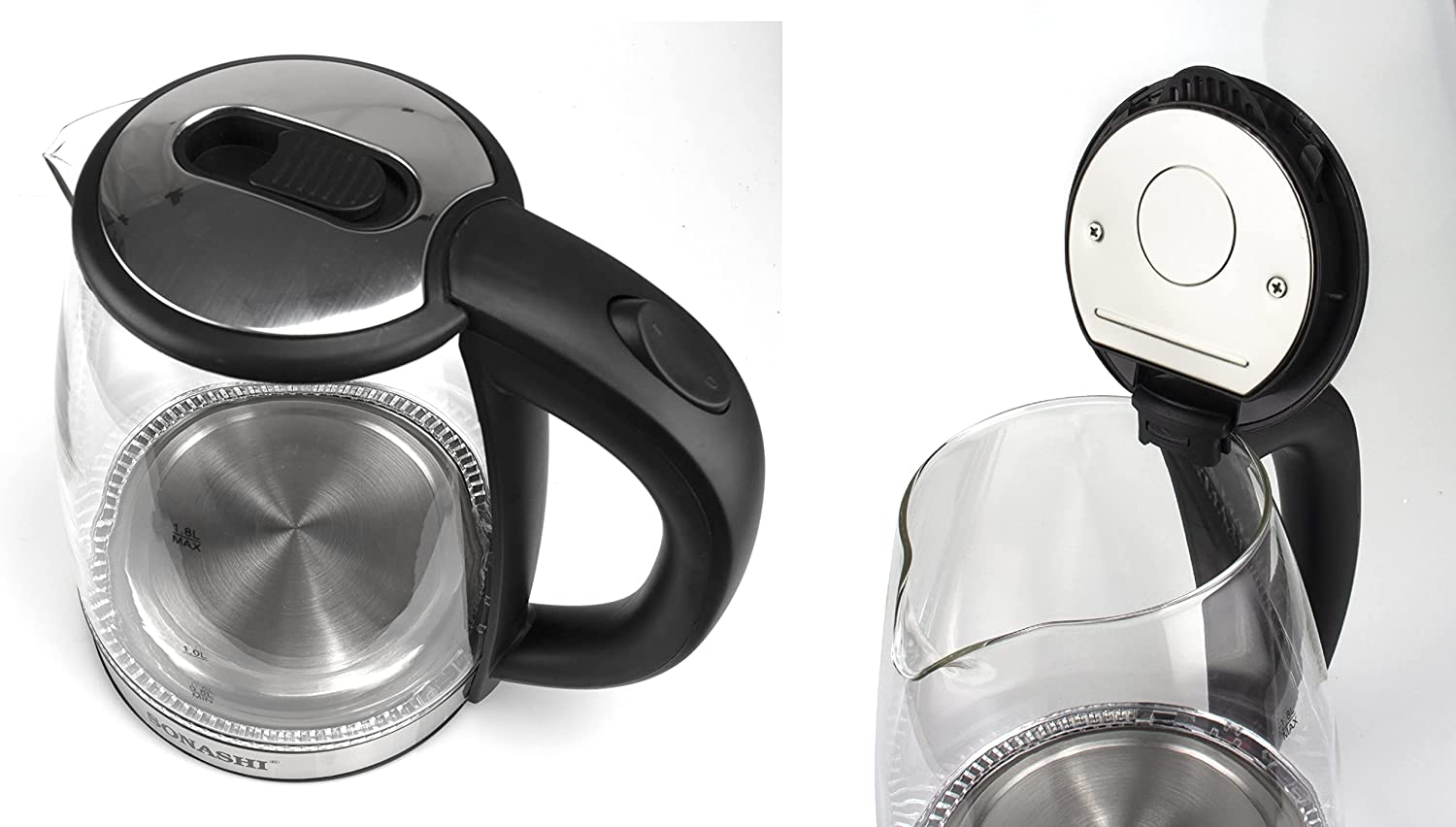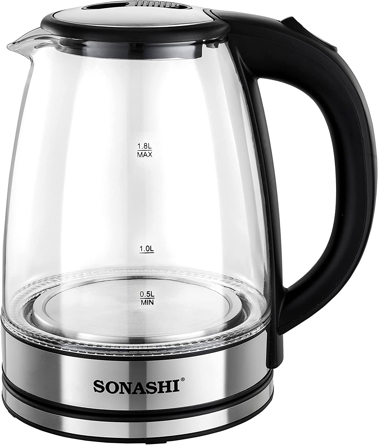 Sonashi 1.8 L Cordless Kettle SKT-1809 – Glass Kettle w/ Safety Lock Lid, 360-degree Swivel Base, Auto Shutdown, Power On/Off Indicator Light | Home Appliances.