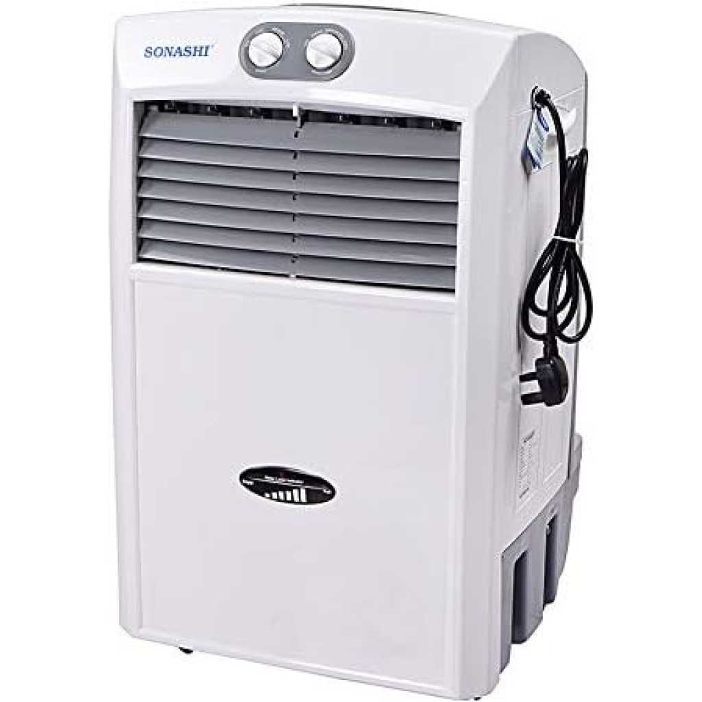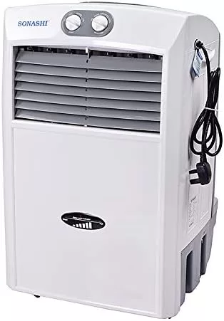 HONEYCOMB TECHNOLOGY MOTORIZE LOUVERS HIGH SPEED MOTOR CASTOR WHELL FOR EASY MOVING LARGE WATER TANK CAPACITY 15L 3 SPEED AIR FLOW POWERFUL BLOWER 4 WAY AIR DEFLECTION INTERNATIONAL STYLE AIR THROW 25 FEET DISTANCE WATER LEVEL INDICATOR ICE CHAMBER AIR DELIVERY 1250 M/HR.3 AC 220-240V 50/60HZ 160W