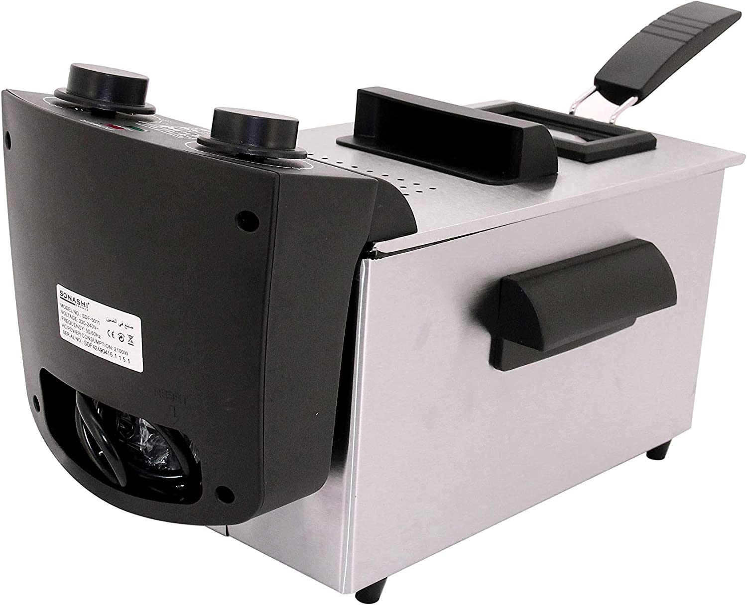 Sonashi 3 Liters Deep Fryer – SDF-5011. Brand: Sonashi Model: SDF-5011 Type: Deep Fryer Capacity: 3 liters Stainless steel housing Adjust thermostat with light indicator 1 big frying basket Removeable enameled inner pan Immersed oil heating element With 30min timer function Lid with easy viewing window Over heat protection Cool touch Heat resistant handles All parts are dishwasher safe,except for the Heating elements Easy to clean Non-slip feet Ac 220 – 240v 50 / 60hz 2100w