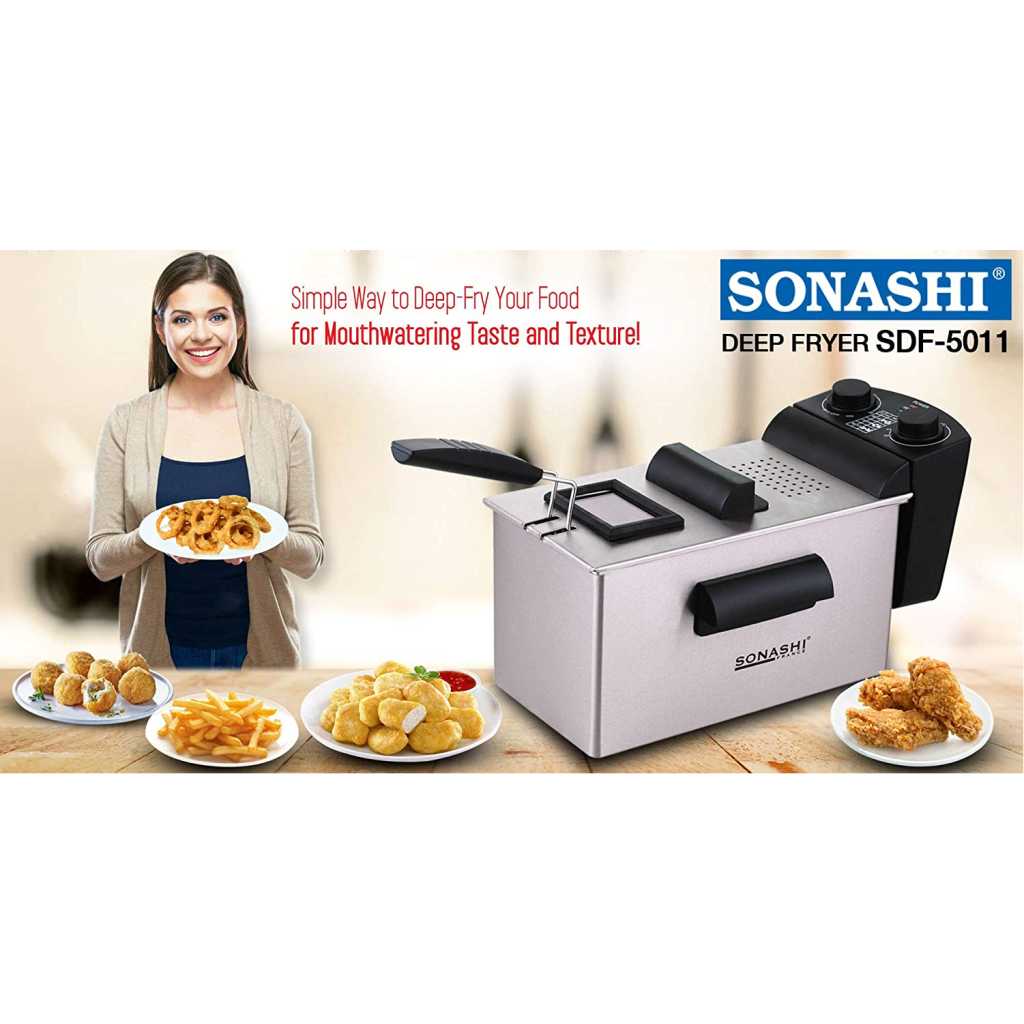 Key Features: Sonashi 3 Liters Deep Fryer – SDF-5011. Stainless steel housing With 30min timer function Non-slip feet All parts are dishwasher safe,except for the Adjust thermostat with light indicator